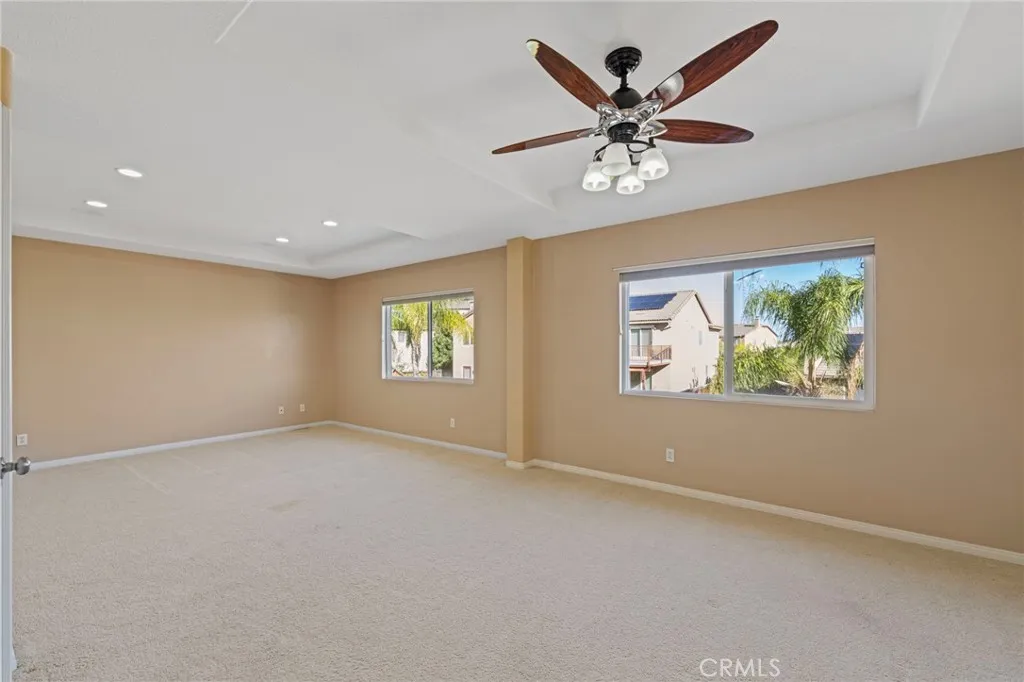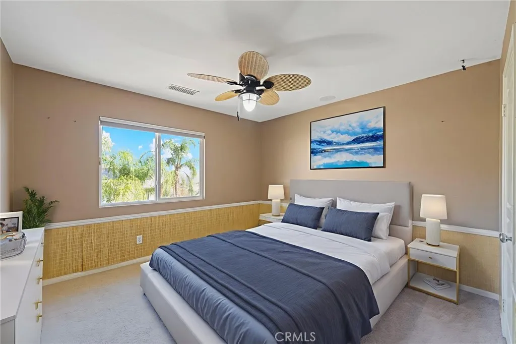 Welcome to 8634 Hunt Canyon Road, a beautifully maintained home in Montecito Ranch. This amazing property offers 5 spacious bedrooms (2 of them are on the main floor), 4 bathrooms, 2-tier AC system, and high ceiling throughout the entire house. The floor plan is thoroughly designed for open-concept living. The living room boasts a cathedral ceiling and open floor plan, saturated with natural light. Formal dining room is adjacent to a dream kitchen that includes an oversized center island, butlers pantry, and cherry wood cabinets. The kitchen opens to an incredibly large family room with a built in entertainment center and fireplace. Another great feature that this home offers is the 2 bedrooms downstairs, perfect for multi-generational compound! One bedroom has its own bathroom, with access to the swimming pool and the backyard. The second bedroom is adjacent to the full bathroom on the main floor. There is more to explore! A beautiful double wrought iron staircase leads you to the second floor. Upstairs offers an oversized loft for entertainment or a quiet hideout/library corner. The spacious, mountain view primary suite includes a premium walk-in closet with custom built-in organizer, separate soaking tub, shower, separate vanities, and a large retreat area that can be easily turned into a nursery or a gym. The left side of this home comprises the 4th and 5th bedrooms and the 4th full bathroom. Theres a metal/secured screen door recently installed at the entrance from the kitchen to the backyard for fresh air enjoyment. The well-kept backyard offers a sparkling, paradise