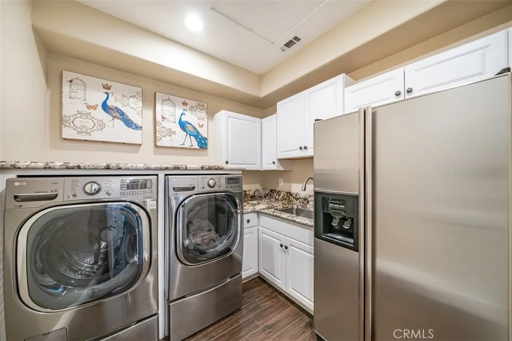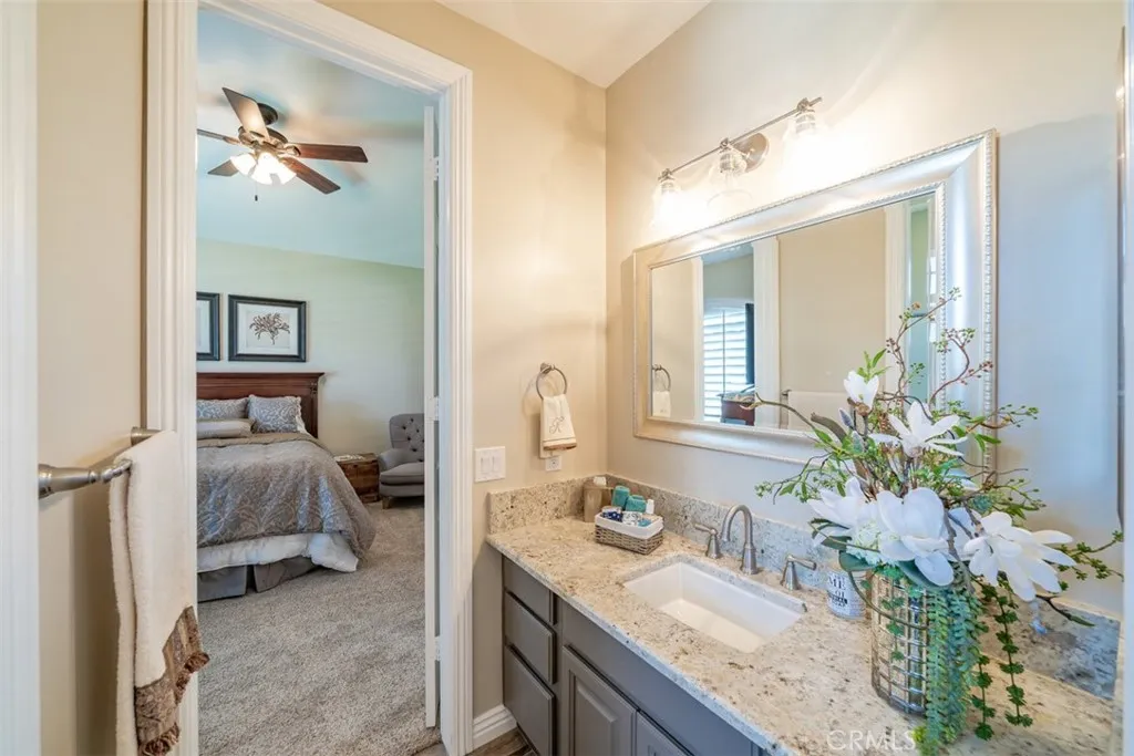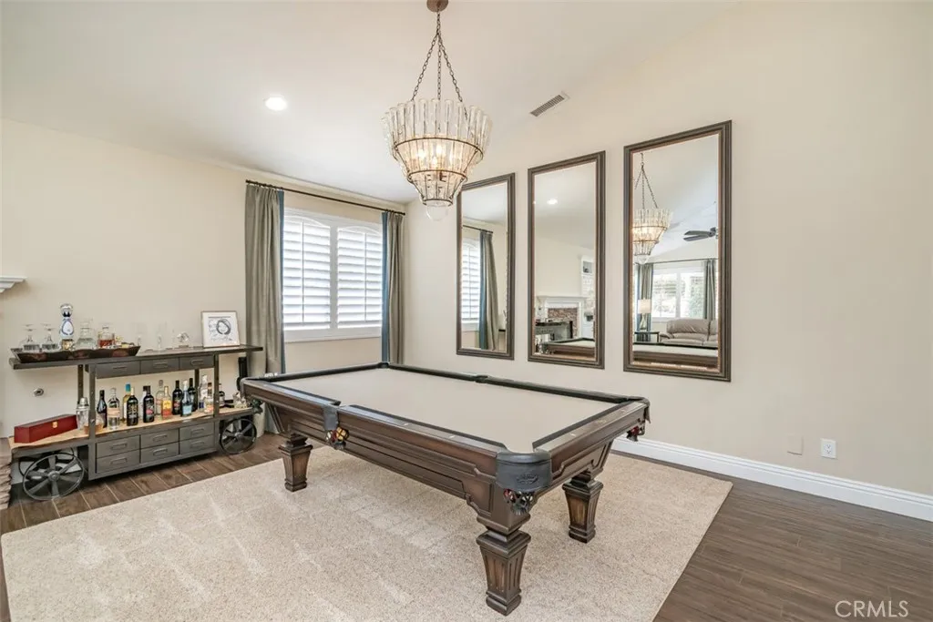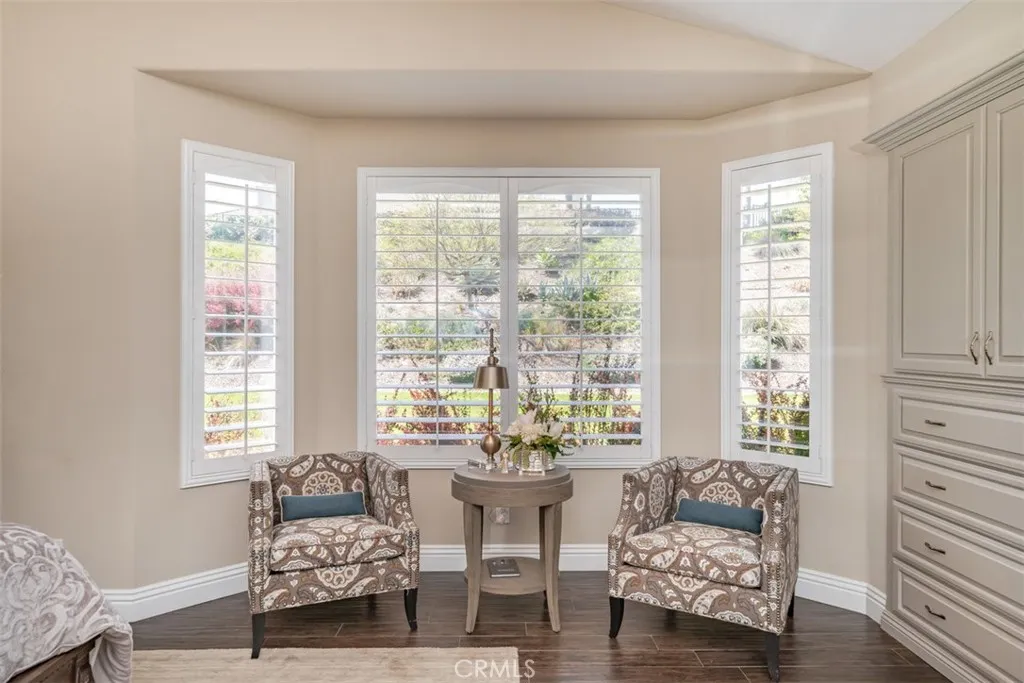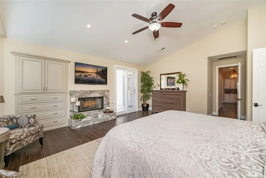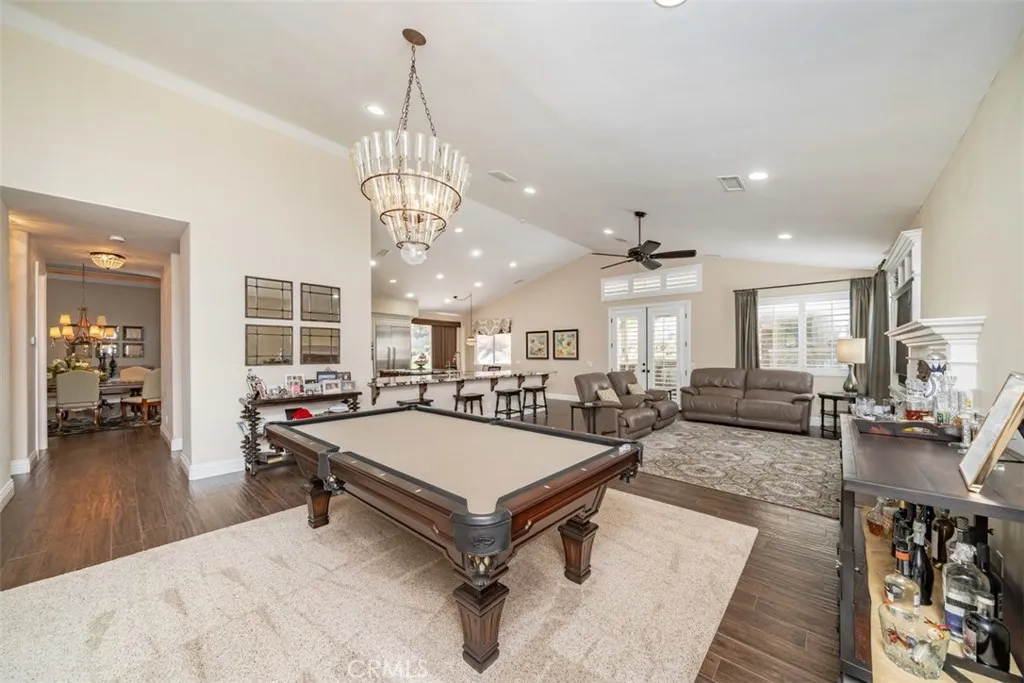 This expansive single story home, located in desirable South Corona neighborhood, has all the upgrades and features you're looking for a luxurious and comfortable style of living. Four bedrooms plus an office, three and a half bathrooms, formal living and dining, and expansive kitchen and adjacent family room are spread over nearly 4,000 square feet, located on a half acre lot. Enjoy entertaining at the formal living and dining room with 14-foot coffered ceilings. The chef's kitchen features Thermador appliances: six burner gas range, double ovens, and built-in refrigerator. There's also a wine refrigerator, Miele coffee maker, and walk-in pantry. Decora cabinets with soft-close doors and drawers line the kitchen, topped by gorgeous marble counters. And the prep island has a conveniently located drawer microwave. All rooms are generously sized, notably the family room with space for a pool table and the primary suite with fireplace and sitting area. The primary suite has a spacious walk-in closet and remodeled bath with oversized shower and free standing tub. Stepping outside, you'll have the luxury of a covered outdoor fireplace and kitchen with newer Twin Eagles gas grill, refrigerator, and bar seating which comfortably seats eight. And enjoy the convenience of gated RV parking with upgraded electrical outlet and easily fits a 55-foot RV. Other notable features include custom shutters and wood blinds, a whole-house vacuum system, new water softener and 75-gallon water heater, epoxy flooring and storage cabinets in the garage, and two outdoor sheds. Located just a short di