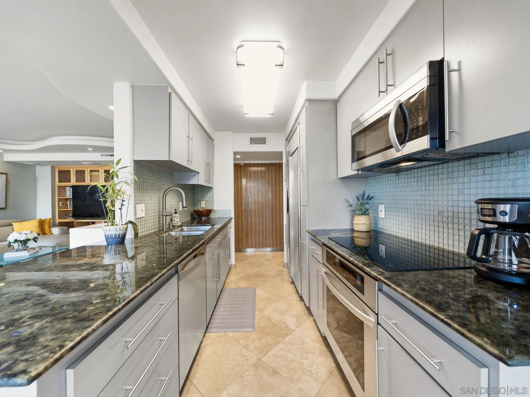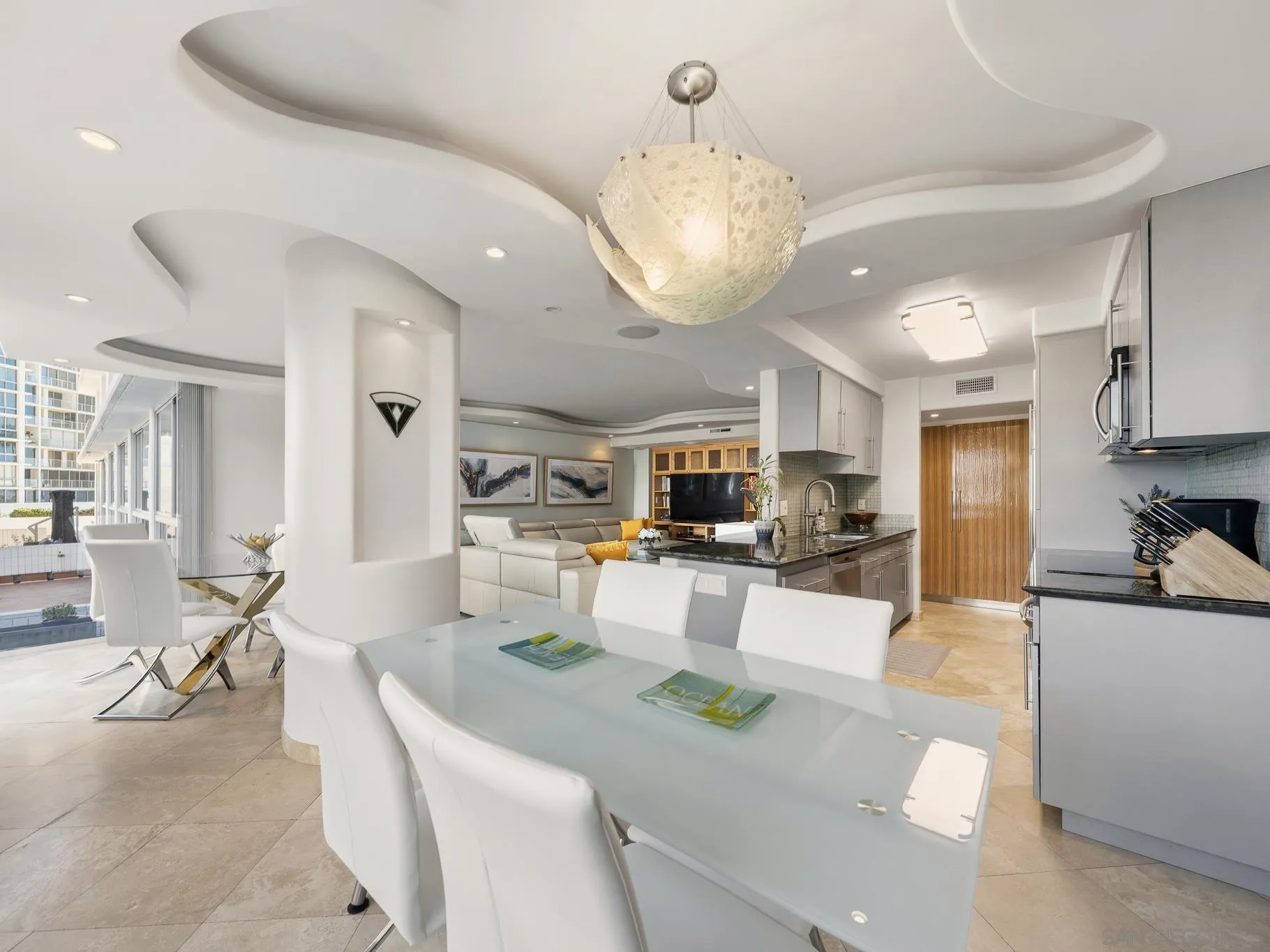 Welcome to one of the most unique, rare, and expansive residences at the iconic Coronado Shores! Your chance to own a RARE DOUBLE TERRACE UNIT WITH 3336 ft of combined indoor/outdoor space. Thoughtfully created by combining two terrace units, this home offers 2,261 square feet of interior living space and an additional 1,075 square feet of private terrace. The layout provides rare flexibility, ideal for hosting extended family, accommodating guests with privacy, or enjoying generous space for everyday living. The residence features two full kitchens, a gracious primary suite with a private retreat and oversized picture window, and seamless indoor-outdoor flow to an expansive ground-level terrace. Just steps from the pool, beach club, and direct sand access, the home allows you to enjoy the best of coastal living with ease, no lobby or elevator required. Offered fully furnished, this is a rare opportunity to own a large-format residence within one of Southern California’s most desirable beachfront communities.