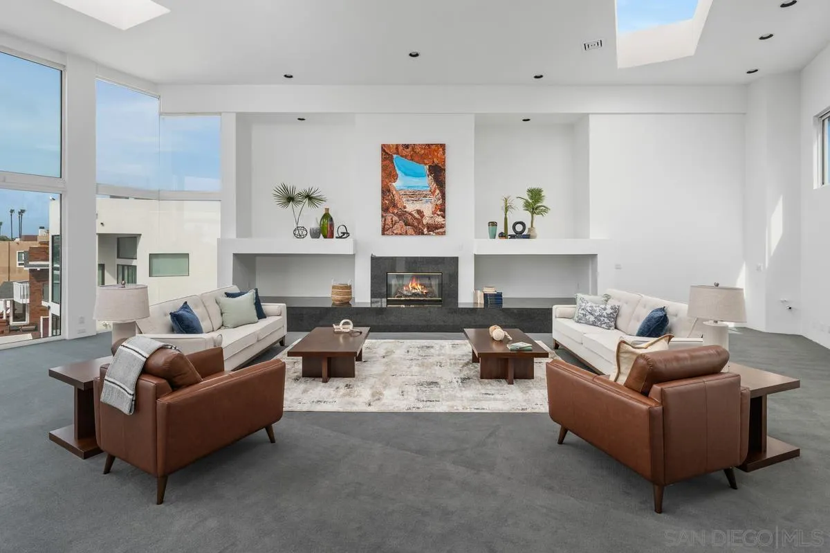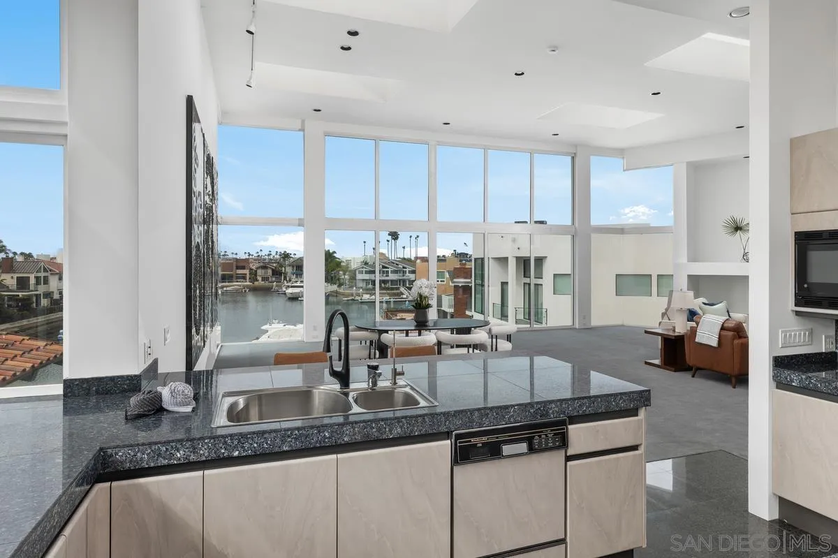 Soaring 33 feet, this custom waterfront residence with prime dock space features rare architecture predating current HOA limits, offering a scale and grandeur that cannot be replicated today. A striking white modern facade creates distinct curb appeal. A true entertainer's paradise, the layout flows effortlessly across all levels. Level one features four en-suite bedrooms, including a primary suite with a spa bath, walk-in closet and a grand fireplace. The second floor boasts a massive, open-concept layout with 21-foot ceilings, floor-to-ceiling windows framing tranquil waterway views, two expansive living areas, dining, a gourmet kitchen and a full bath. At the top, the expansive Rooftop Lounge, encased in glass railings, treats you to 360-degree panoramic views of the bay, ocean, skyline, and mountains. It is the ultimate private setting for spectacular sunsets and the annual Big Bay Boom fireworks. Step outside to dock space accommodating up to a 45-foot vessel for immediate deep-water bay access. Below lies one of the home's most coveted features: a rare subterranean garage with 10-foot ceilings, secure parking for 6+ vehicles (ideal for collectors), a dedicated wine cellar, a workshop, and large storage rooms. Boasting phenomenal light-filled spaces, this architectural masterpiece offers a rare opportunity to elegantly personalize a legacy property. Embrace the unparalleled Coronado Cays lifestyle, featuring 24/7 security, resort amenities, tennis, pristine parks, Silver Strand beach access, and effortless waterfront living.