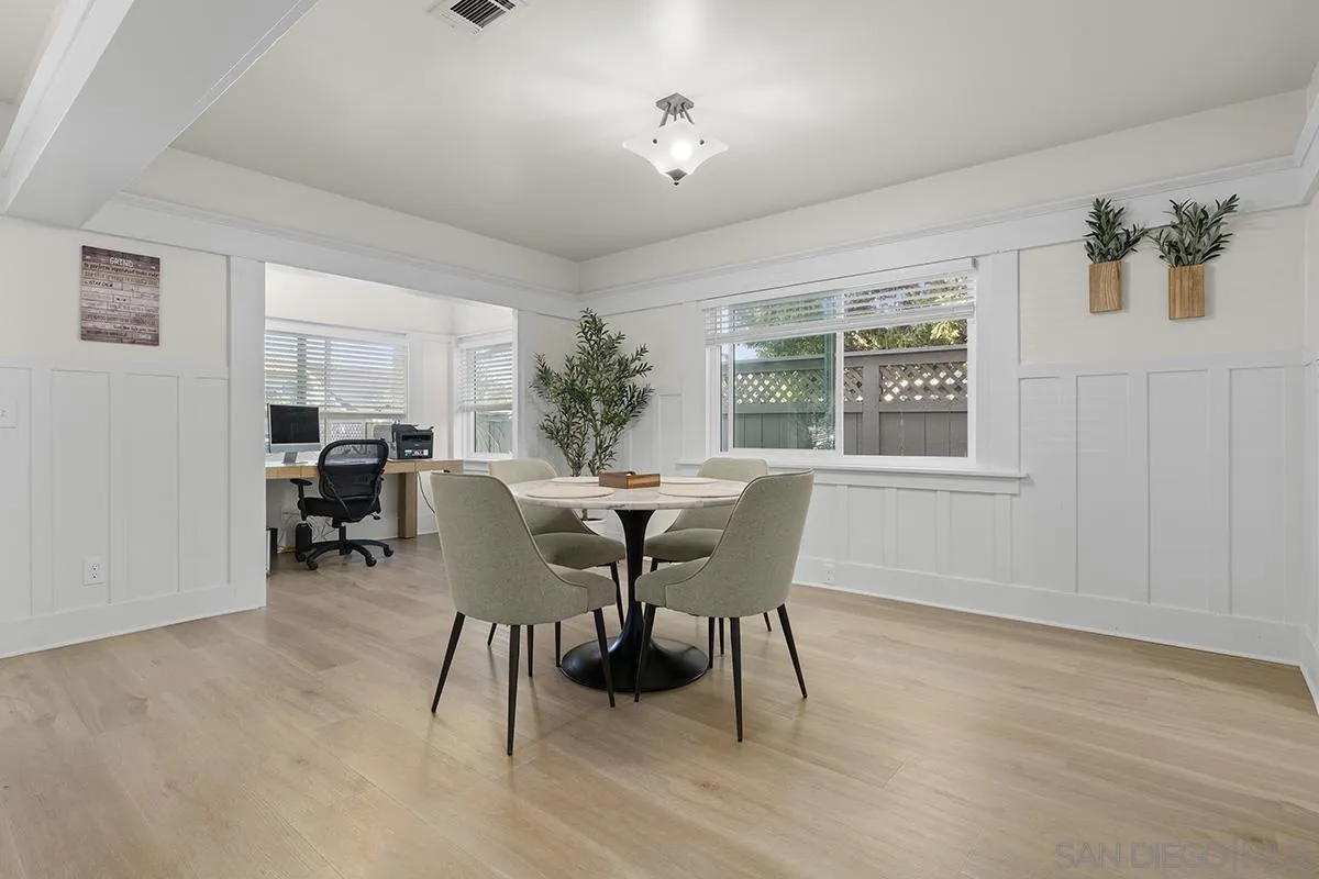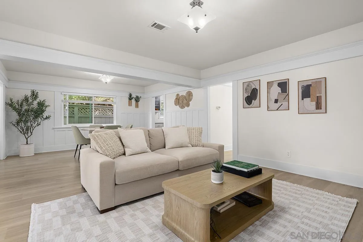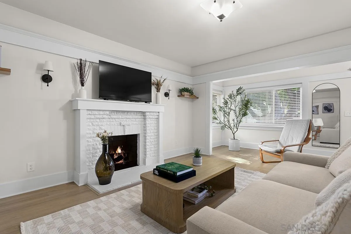 Tucked gracefully behind its storybook façade, this captivating Coronado residence captures the essence of refined coastal living with an inviting blend of warmth, style, and sophistication. Thoughtfully refreshed with a crisp new exterior and curated updates throughout, the home radiates an airy, light-filled ambiance that feels instantly relaxing. The open living area is centered around a classic fireplace and flows seamlessly into the dining and kitchen spaces—perfect for both intimate evenings and casual entertaining. Modern comforts including a new roof, dual-pane windows, upgraded A/C system, and sleek new appliances complement timeless architectural character and a soft, coastal-inspired palette. Upstairs, a versatile bonus room offers space to unwind or create, while the detached studio invites endless possibilities—an inspiring home office, tranquil guest suite, or artful retreat. The expansive 5,825-square-foot lot enhances the sense of privacy and potential, with a detached one-car garage and a backyard ideal for entertaining, gardening, or envisioning a future addition or ADU. Perfectly nestled in the heart of Coronado Village, this home places you just moments from charming cafés, boutique shops, lush parks, and the island’s iconic beaches—where every stroll feels like a seaside escape and life moves at the gentle pace of the ocean breeze.