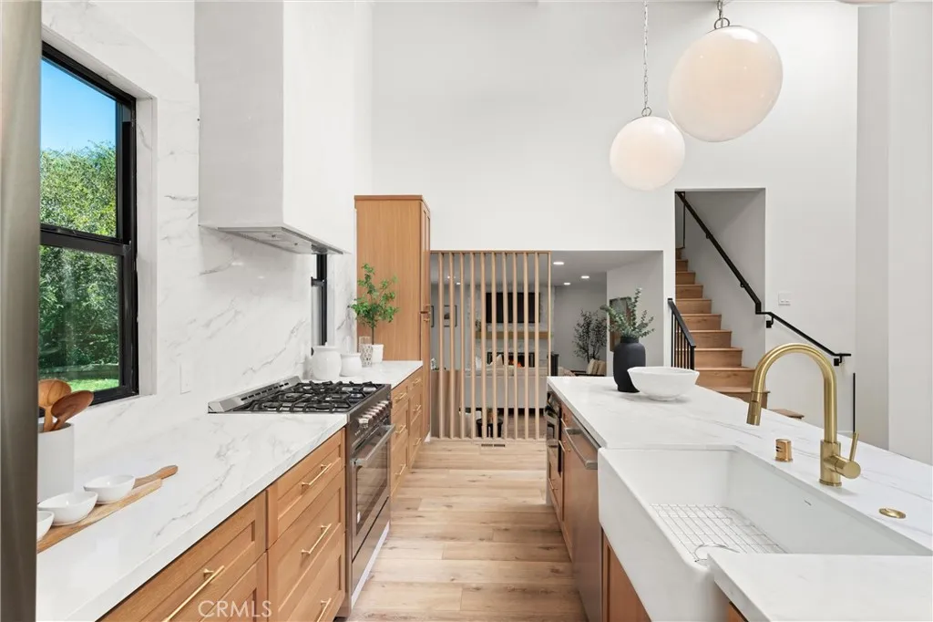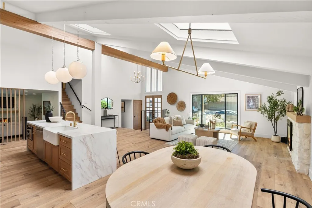 Tucked within Mesa Verdes highly desirable Lower Birds neighborhood, 2036 Mandarin Drive offers five bedrooms, three bathrooms, and approximately 2,711 square feet of refined living space on a quiet interior lot. Thoughtfully updated, this home blends timeless craftsmanship with modern comfort, creating an inviting atmosphere throughout. The flexible floor plan features two spacious living areasperfect for entertaining or relaxingand a convenient ground-floor bedroom with an adjacent bath, ideal for guests or multigenerational living. The kitchen showcases custom cabinetry, stone countertops, a designer backsplash, and a range hood finished in Venetian plaster. Real oak accents, custom metal railings, solid white oak doors, and upgraded lighting bring warmth and cohesion to every space. The master suite features a generous walk-in closet and a beautifully finished bath with a soaking tub and dual shower heads. Additional improvements include updated plumbing and electrical systems, enhanced insulation, raised ceilings, recessed lighting, and an upstairs laundry closet for added convenience. The exterior features brick and board-and-batten siding, an oak and glass double entry door, and panoramic doors leading to the backyard. The color scheme is complemented by real oak wood posts and a custom wood garage door. Outdoor spaces were designed with concrete patios and pathways, improved drainage, lush landscaping, and a fully updated front yard irrigation system. Set within one of Costa Mesas most beloved communities, the Lower Birds neighborhood is known for its friendly atmos
