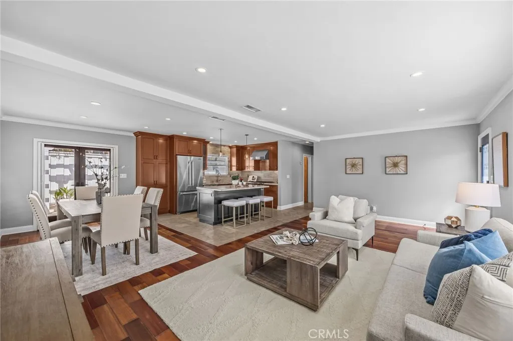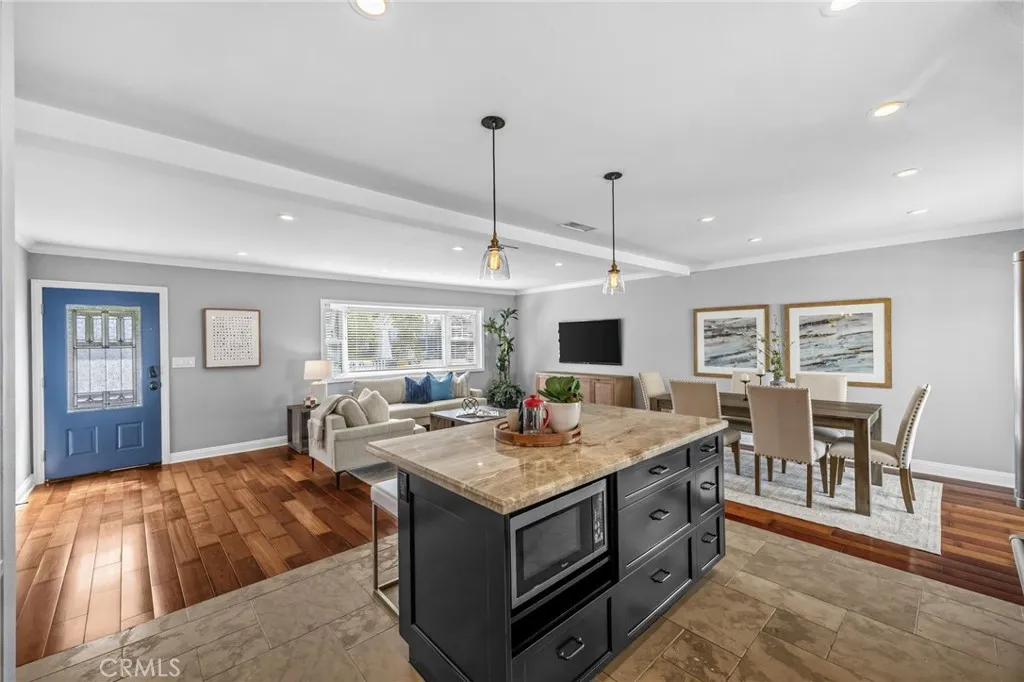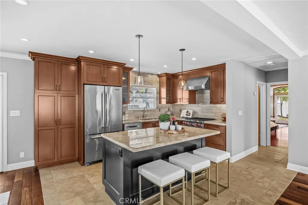 Welcome to this beautifully upgraded 2-bedroom, 2-bathroom single-level home, ideally situated on one of the few cul-de-sacs in Eastside Costa Mesa. Fully remodeled and thoughtfully designed, this home blends modern comfort with timeless craftsmanship. Step inside to find open-concept living, kitchen, and dining rooms that create a light-filled, inviting space... perfect for both everyday living and entertaining. The kitchen is a chefs dream, featuring a professional-grade Wolf range and oven, a top-of-the-line KitchenAid refrigerator, and ample counter space. Stunning custom woodworking throughout, from built-in cabinetry to detailed wood paneling, adds warmth and character to every room. The expansive primary suite offers vaulted ceilings with exposed beams, custom closets, and a spa-like bathroom complete with a glass-block shower, rain shower-head, full-sized Jacuzzi tub, marble countertops, and limestone tile. The second bedroom includes a charming bay window and custom shelving, making it ideal for guests or a home office. Modern upgrades include central air conditioning, a tankless water heater for instant hot water, and a convenient covered side area thats perfect for a workshop, extra storage, or even additional parking. Surrounded by lush gardens and framed by a classic white picket fence, this private and peaceful property offers a rare opportunity to own a truly special home in one of Costa Mesas most desirable neighborhoods.