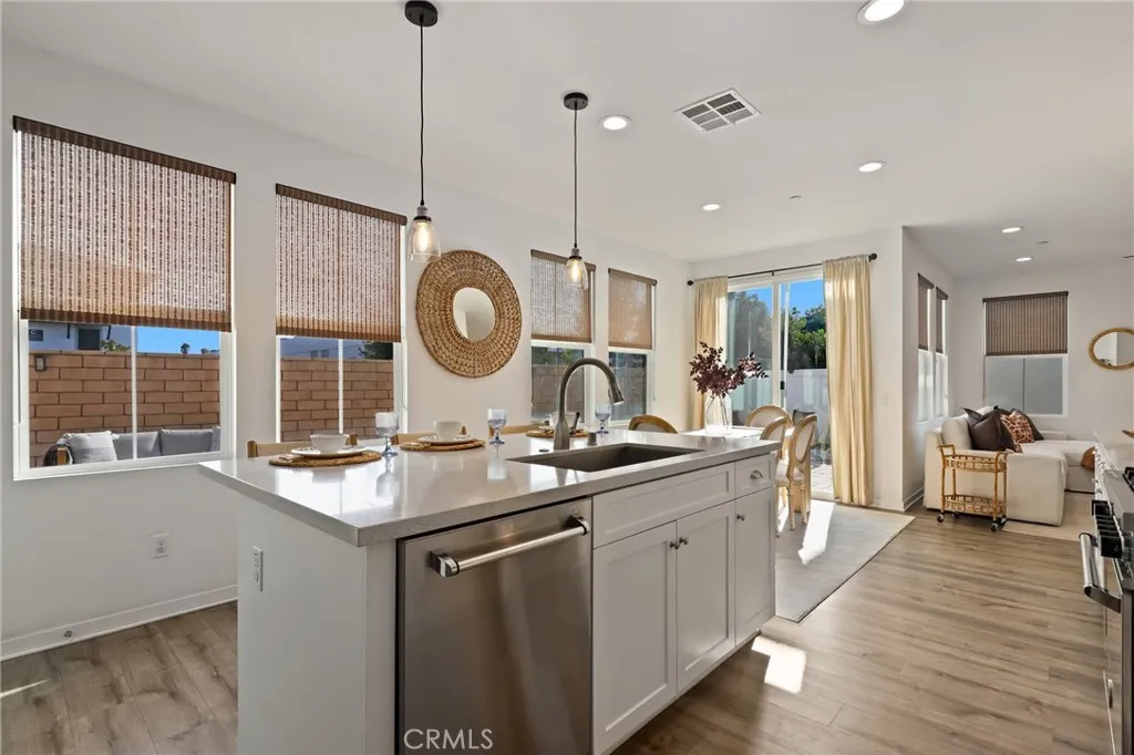 Modern Coastal Living in Aura with 4 Bedrooms, A Loft, and Minutes from the Beach. Tucked into one of the most private and desirable locations within Auraa contemporary enclave of newer detached homes in Costa Mesathis 4 bedroom, 3 bathroom residence built in 2017 offers 2,225 square feet of modern design, comfort, and convenience. Just minutes from the beach, Segerstrom Center for the Arts, and South Coast Plaza, it provides the ultimate Southern California lifestyle. The open-concept first floor features soaring ceilings, abundant natural light, and a seamless flow between the living, dining, and kitchen areas. The gourmet kitchen is the heart of the home, showcasing quartz countertops, soft-close shaker cabinetry, a deep farmhouse sink, a large center island with pendant lighting, and premium Bertazzoni Italian appliances. A main-floor bedroom and full bath offer flexibility for guests or a home office. Upstairs, the spacious primary suite includes dual walk-in closets and a spa-inspired bath with dual vanities, a frameless walk-in shower with multiple showerheads and bench, and a private water closet. Two additional bedrooms, a versatile loft, and a full bath provide comfort and functionality, while the upstairs laundry room with utility sink and built-in cabinetry adds convenience. Wide-plank waterproof laminate flooring, LED recessed lighting, designer fixtures, central A/C, and dual-pane windows enhance the homes modern appeal. The private backyard features pavers, block walls, and vinyl fencing, creating a low-maintenance space perfect for entertaining. A two-car ga