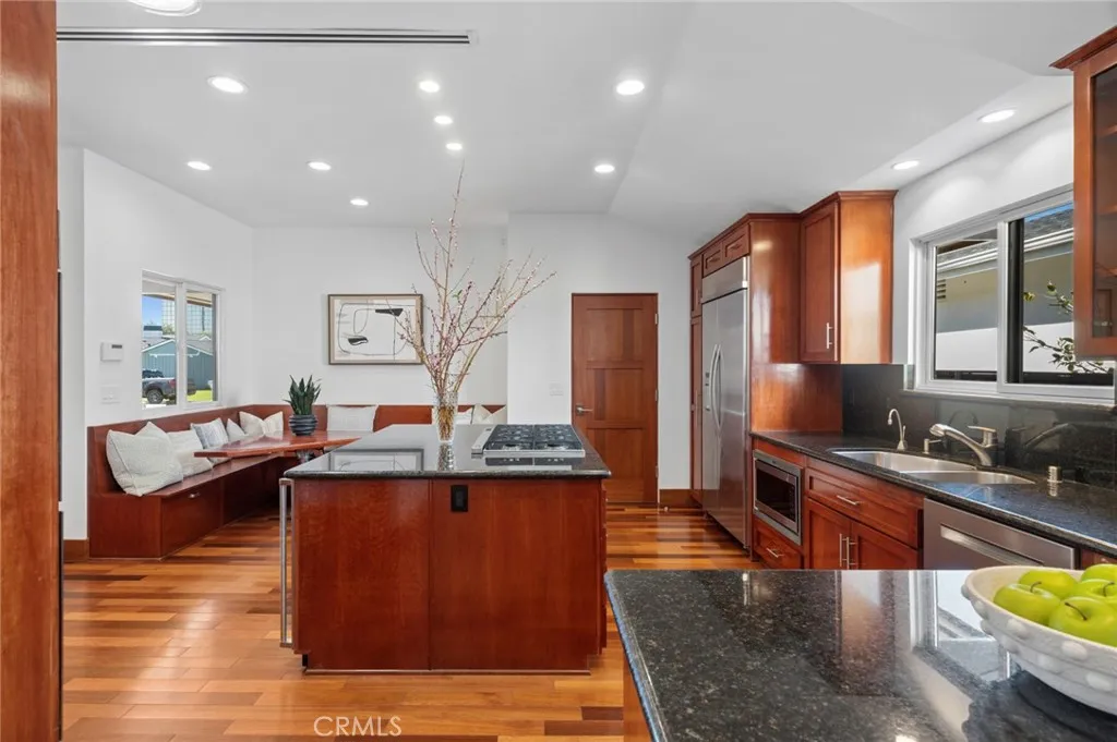 450 Cabrillo is a warm and inviting home with 4 bedrooms and 3.5 baths with approximately 3,409 SF of well-designed living space set on a large, approximately 8,104 SF lot. Extensively remodeled and expanded by the owner--a licensed general contractor--the home features many special, well crafted touches. The floor plan works beautifully with a wing for 3 bedrooms (or 2 plus office), and a separate primary wing that opens to the yard. The primary bath boasts a dual sink vanity, separate tub and shower, and a voluminous walk-in closet. The kitchen has a large built-in breakfast nook, along with a peninsula countertop with bar seating. It opens to the dining area and spacious living room with flagstone fireplace, gorgeous built-in cabinetry and beverage refrigerator. A sizable wine closet awaits your bottle collection (or acts as great storage). The fantastic finished basement level offers space for a TV/game room, massive home gym/yoga area, office, or other creative use. Expansive Fleetwood sliding doors disappear into the walls and open the main living area to the backyard, creating a seamless flow between indoors and out. The covered lanai features heaters, ceiling fans, wall mounted TV, and hard plumbed gas for BBQ with ample area for outdoor dining and lounging. With no neighbors immediately behind, the setting is serene and private. The lucky owners enjoy a private gate that leads to acres and acres of grass fields and a playground at Harper Park. Feeds to award-winning Mariners Elementary, Ensign Intermediate and Newport Harbor High. With its proximity to 17th Street,