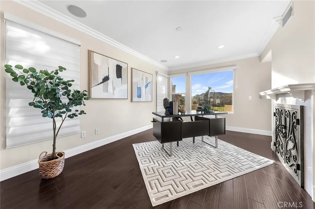 Exceptional Fairway and Hillside Views! Rarely available fairway-front luxury residence on the 9th Fairway of Coto de Cazas South Course, within prestigious 24-hour guard-gated community, offering panoramic golf course and hillside vista and meticulously designed resort-style backyard. This stunning estate showcases refined craftsmanship and premium materials increasingly rare in todays new construction, w/ extensive upgrades and custom features throughout. Situated on approx. 8,401 sq ft lot, property offers approx. 4,398 sq ft of refined living space w/ 4 bedrooms, 4.5 bathrooms, dedicated downstairs office, and oversized upstairs loft. From formal entry, natural stone foyer leads to private office w/ custom built-ins and stylish powder room, while formal living room is highlighted by soaring 2-story ceilings, dramatic fireplace and sweeping custom curved staircase w/ natural stone treads, ornate wrought-iron balustrades, and rich wood detailing. Gourmet kitchen showcases large center island w/ granite countertops, custom wood cabinetry, walk-in pantry, and full suite of high-end Viking appliances, flowing into two dining areas and grand family room w/ fireplace. Formal dining room opens to backyard through double doors, while kitchen and secondary dining area are surrounded by abundant windows capturing outdoor views. Desirable main-floor bedroom suite features en-suite bathroom and direct backyard access, ideal for guests or multigenerational living. Upstairs, the luxurious primary suite features a fireplace, a scenic retreat area, and a private balcony with breathtakin