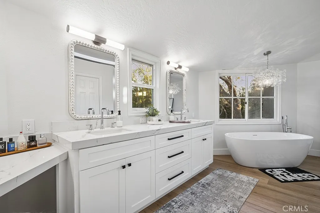 Set amidst the enchanting landscape of Coto de Cazas coveted Village enclave, this exquisitely remodeled residence is a rare blend of refined design and serene natural beauty. Surrounded by lush foliage and soaring trees, this home offers unparalleled privacy and gorgeous views from nearly every room. A storybook-style entry porch invites you to unwind in styleperfect for evening cocktails, relaxed conversation and soaking in the warm hues of twilight as day turns to dusk. The heart of the home is a show-stopping kitchen appointed with custom shaker cabinetry, striking quartz countertops, a generous center island with bar seating and premium stainless steel appliancesdesigned to inspire both everyday living and elevated entertaining. The entry level showcases a thoughtfully designed layout with a dedicated office, sophisticated powder room, spacious laundry room and direct access to an oversized two-car garage. The master suite is a sanctuary unto itself, featuring a spa-caliber bath with a stunning standalone soaking tub, an expansive walk-in shower, and beautiful quartz countertops that evoke understated luxury. Three generously sized secondary bedrooms and a well-appointed bathroom complete the upper level. On the ground level a versatile bonus room provides endless possibilities for a media retreat or gym and connects directly to a private guest bedroom and bathroom. Every level of the home seamlessly integrates indoor and outdoor living with expansive decks that invite you to unwind while taking in serene vistas of the sprawling backyard and majestic trees beyond. Whet