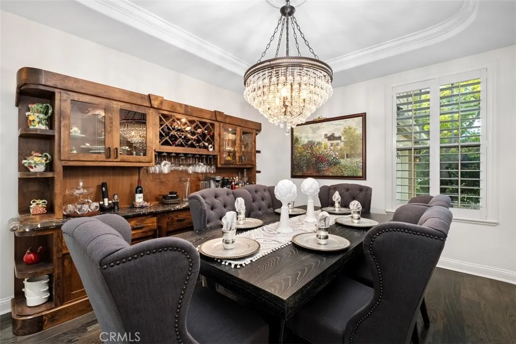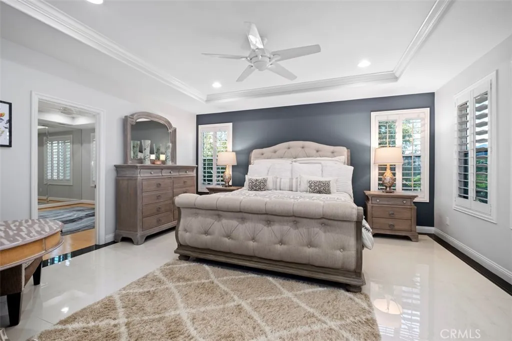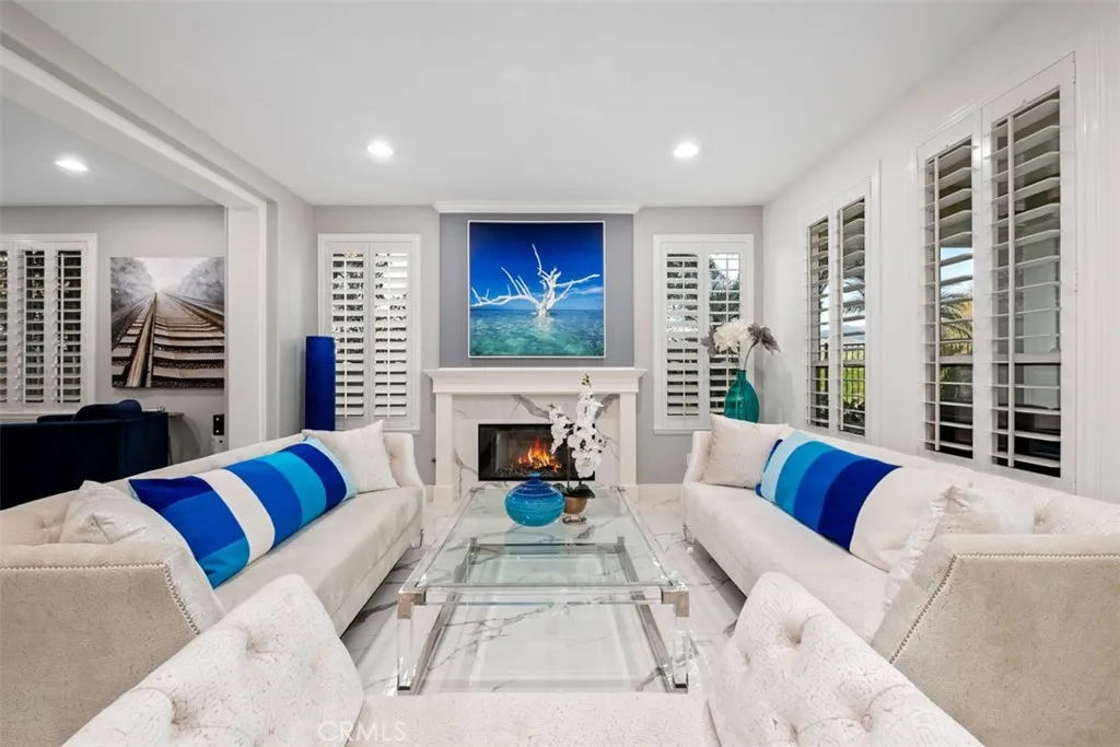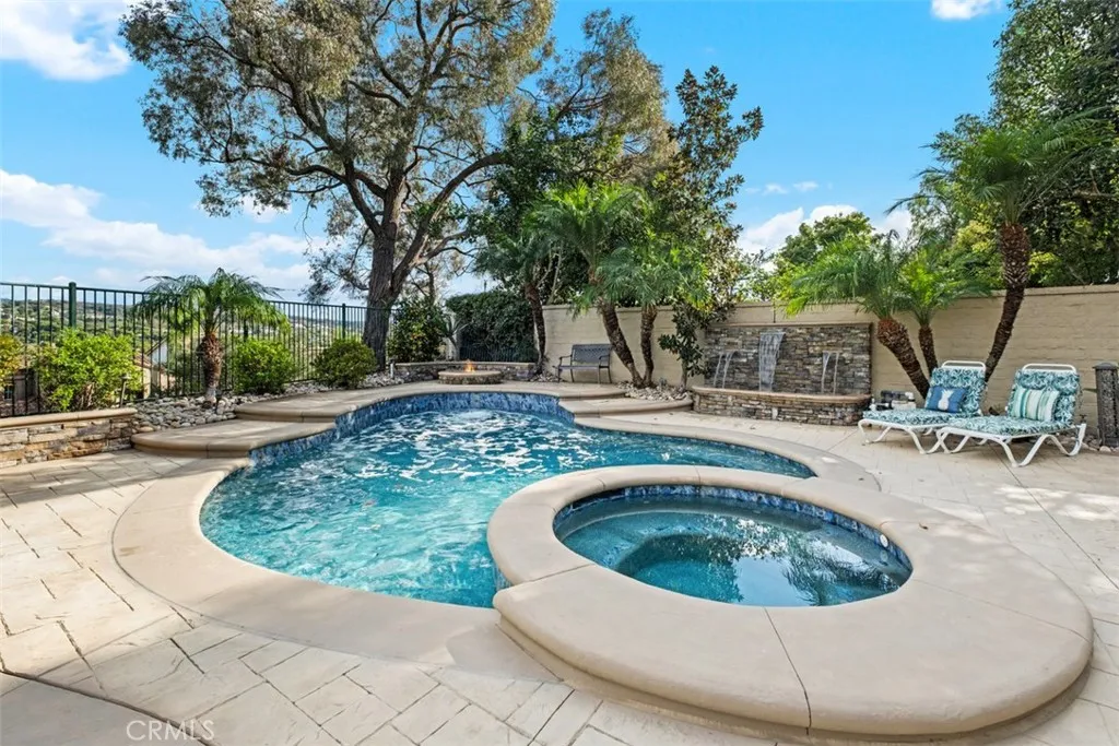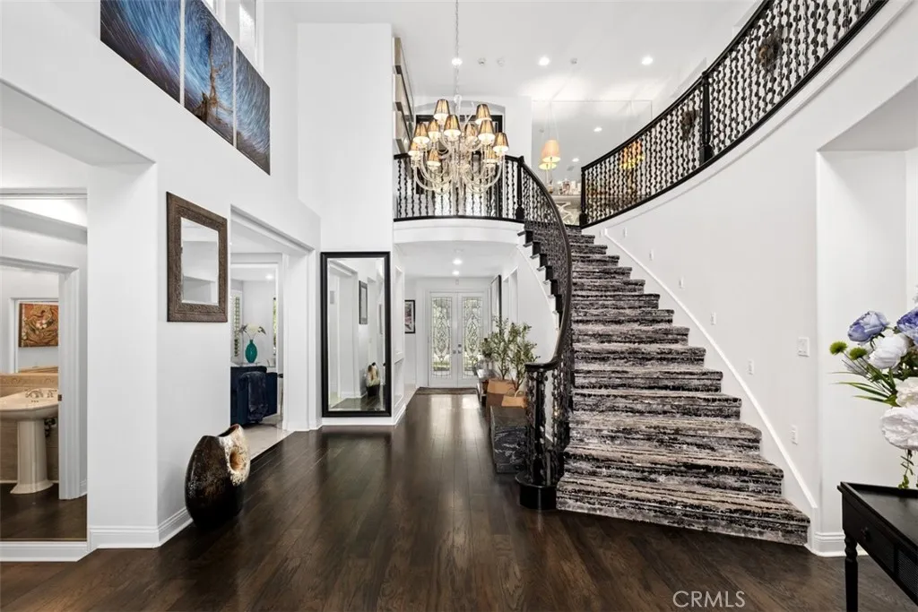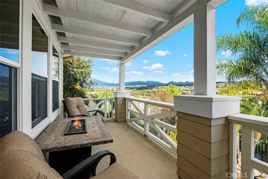 Welcome to this private Cape Cod-inspired estate in guard-gated Coto de Caza, offering panoramic east-facing views and sophisticated entertaining. Nestled at the end of a cul-de-sac, this home boasts the largest floor plan in the Southern Hills Encore Tract and a truly exceptional living experience. An expansive driveway and garage provide parking for up to eight vehicles. Inside, the soaring entry reveals sweeping wrought-iron stairs and a living room with one of three fireplaces. Four sets of French doors create a seamless transition to the backyard oasis, complete with a PebbleTec pool and spa, built-in BBQ with gas line, fire pit, and a waterfall. The outdoor space includes an outdoor shower, lighting, and surround sound that extends throughout homes main level. Four balconies provide private vantage points for the views. Throughout the home, hardwood floors, contemporary lighting, and wood shutters add functional elegance. The gourmet kitchen is open to the family room and equipped with professional-grade WOLF/SubZero appliances, dramatic slab countertops, and abundant storage including a walk-in pantry. A formal dining room is complemented by casual eat-in space and a breakfast bar. With 5 bedrooms and 5.5 baths, including a main-level in-law suite, everyone enjoys comfort and privacy. The primary suite is a true retreat, featuring a fireplace, private balcony, and a walk-in closet with custom built-ins and attic access for additional storage. An adjoining room offers flexible space for a private gym, office, or expanded closet. The spa-like primary bath includes an o
