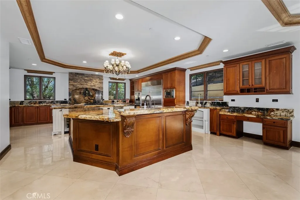 Discover a timeless masterpiece nestled on over an acre of serene land in the exclusive enclave of Coto de Caza. This grand three-story residence equipped with an elevator offers unparalleled elegance. As you step through the steel doors, you are greeted by a breathtaking double staircase that ascends towards a soaring 30-foot ceiling, adorned with a dazzling chandelier. The first floor offers a secluded guest suite, complete with a private kitchen, laundry, bathroom, and courtyard. The home is complete with six bedrooms, two offices, seven bathrooms, and three half-bathrooms, providing ample space for family and guests. The heart of the home is the gourmet kitchen, adorned with marble flooring and stainless steel appliances. The kitchen seamlessly flows into a dining area, perfect for entertaining guests. As you enter the primary suite, a sprawling 1,800-square-foot(est.) sanctuary unfolds, offering a serene retreat, a spa-like bathroom, and a balcony overlooking the pool. Indulge in cinematic experiences within your private theater, complete with a stylish bar with barstool seating. Each bedroom is equipped with an ensuite bathroom, ensuring ultimate comfort and privacy. The estate's outdoor oasis features a sparkling pool, spa, sauna, and an outdoor kitchen ideal for relaxation and entertainment. Lush landscaping and mature trees create a serene and private setting. The estate offers a private gated entry boasting a four-car garage and additional parking spaces on the driveway. The property shares a boundary with the William Lyon estate. Enjoy access to world-class ameni