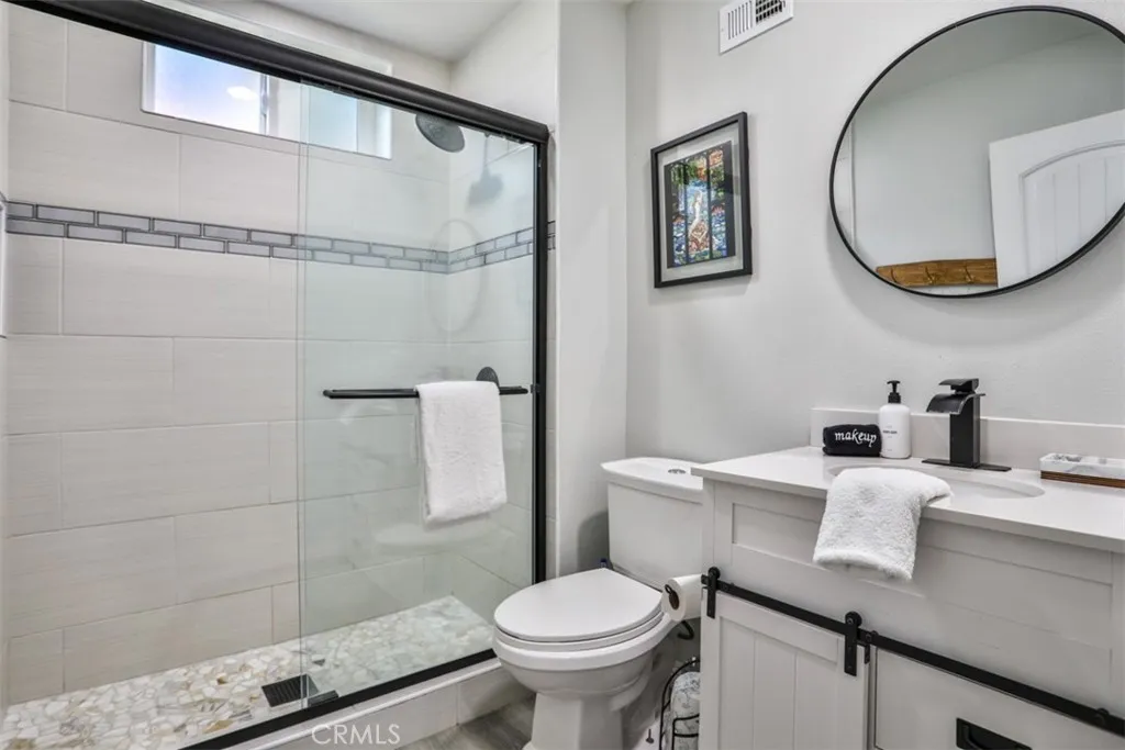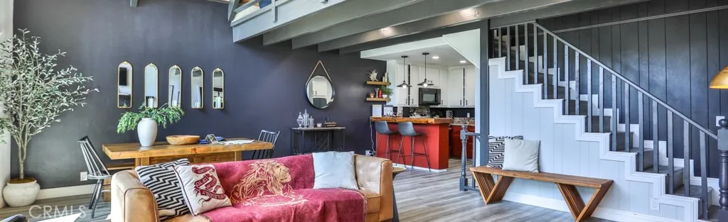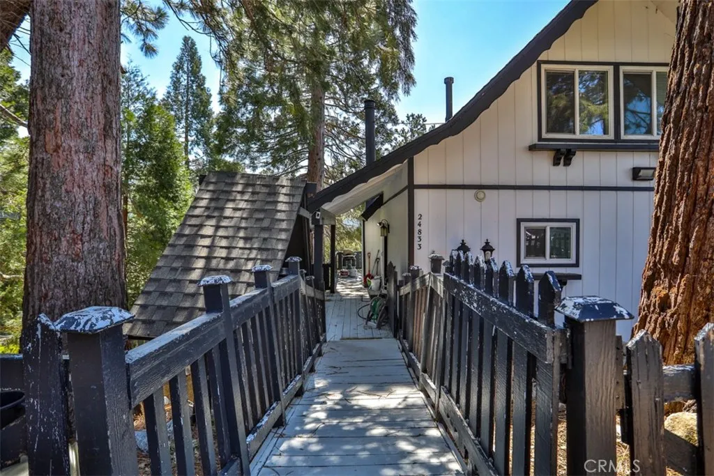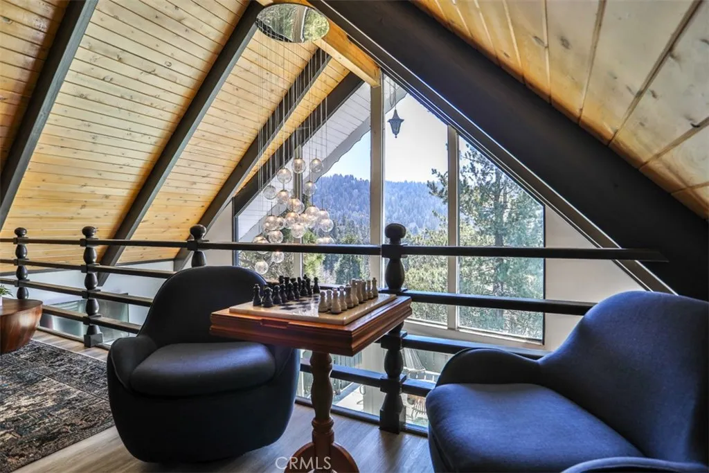 Imagine waking up to snow-dusted pines, cocoa in hand, as the fire crackles beneath cathedral ceilings. This could be your Hallmark-movie setting, and it's ready for holiday memories. Escape to the serene, alpine beauty of Crestline with this charming A-frame cabin that blends classic architecture and modern comforts. Nestled less than a mile from the picturesque Lake Gregory, adventure awaits with hiking trails like Crestline Canyon, Heart Rock, and Strawberry Peak nearby. Step inside to the soul-inspiring living room with soaring, two-story vaulted ceilings adorned with natural wood and open beams, creating a warm and inviting ambiance. Awash in natural light from two-story windows framing stunning mountain views, the living room offers a perfect retreat to unwind and make memories. Enjoy cooking up a great meal in the upgraded kitchen, featuring granite counters, custom tile backsplash, and pendant lights over the breakfast bar. Central heating, ceiling fans in each bedroom, and dual-pane windows ensure year-round comfort, while the cozy fireplace beckons for relaxing evenings. Fully remodeled with laminate flooring and custom lighting throughout, this retreat is move-in ready. The upstairs loft offers a second, cozier living space with a beautiful view and a cathedral-ceilinged bedroom. Downstairs, youll find three additional bedrooms, a fully remodeled bathroom, and the washer and dryer. One of the bedrooms does have a closet and is currently used as a game/storage room. Relish in evergreen, mountain vistas from the wraparound deck, perfect for stargazing or savoring y