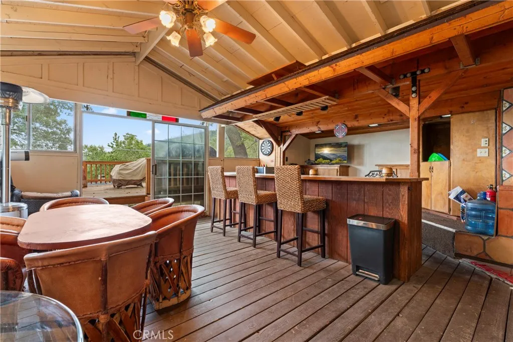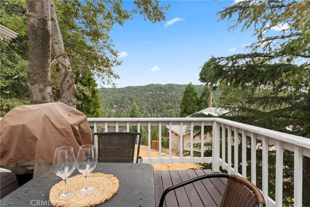 Your Mountain Retreat Awaits. Dreaming of a peaceful mountain getaway with room for everyone? This inviting home blends warmth, comfort, and breathtaking views. Step inside and unwind by the cozy brick fireplace, the perfect spot for winter evenings after a day outdoors. The main level offers a spacious game room, three bedrooms, one and a half baths, and brand new laminate flooring - ideal for family gatherings or weekend guests. Upstairs, light floods into the expansive living and dining area, designed with sweeping vistas to frame your every day. The master suite opens onto a private deck, where you can sip your morning coffee while soaking in the mountain air. A guest room and additional full bath add even more flexibility for family and friends. The heart of the home, the kitchen, features freshly painted cabinets, granite countertops, and a generously sized eating island, perfect for both casual meals and entertaining. Recent upgrades include a new deck, roof and paint. Outdoor living truly shines here with a large entertainment area complete with an outdoor kitchen, bar, and multiple balconies - your own private setting for unforgettable summer evenings under the stars. Centrally located near Lake Gregory, Lake Arrowhead, and popular mountain attractions, this home delivers the serene mountain lifestyle youve dreamed of, with convenience never far away.