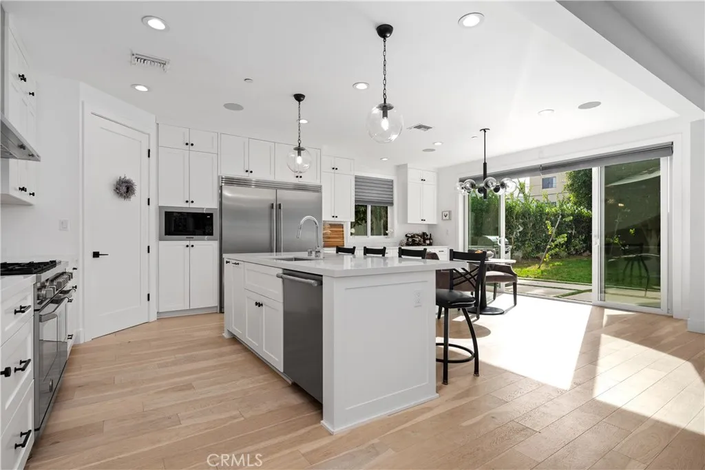 Built in 2023, this Del Rey gemset on an impressive 8,500 Sq Ft Flat Lot and designed by renowned Architect, Kenneth Niemerskobeautifully embodies modern living. The home features 4 Bedrooms and 3 Bathrooms with a spacious, flowing layout enhanced by advanced Smart Home technology. Upgrades include hardwiring for internet, a dedicated Zoom Room with a built-in desk, a Smart Closet for networking equipment, and integrated surround sound throughout the entertainment spaces. The Gourmet Chefs Kitchen boasts professional-grade appliances, a walk-in pantry, a large quartz-topped island with bar seating, and an additional expansive buffet counter. The great room has sliding glass doors, opening to a large yard with lush landscaping that blends interior comfort with natural beauty. The outdoor retreat includes a built-in BBQ and refrigerator-perfect for hosting gatherings or enjoying quiet evenings. The main floor includes a guest bedroom, a full bathroom, and an attached two-car garage with direct access. Upstairs, a generous Loft provides space for multiple uses. The Primary Suite features a tray ceiling, a walk-in closet, and a luxurious spa-inspired bathroom complete with dual vanities and a freestanding soaking tuban ideal space for rest and rejuvenation. Fully owned Solar Panels add to the homes efficiency. Situated on a cul-de-sac near Sunkist Park and conveniently close to the 405, 10 and 90 freeways, the location is excellent for commuters. The beaches of Santa Monica, Venice, Marina Del Rey and Long Beach are just a short drive away, offering quintessential coastal livin