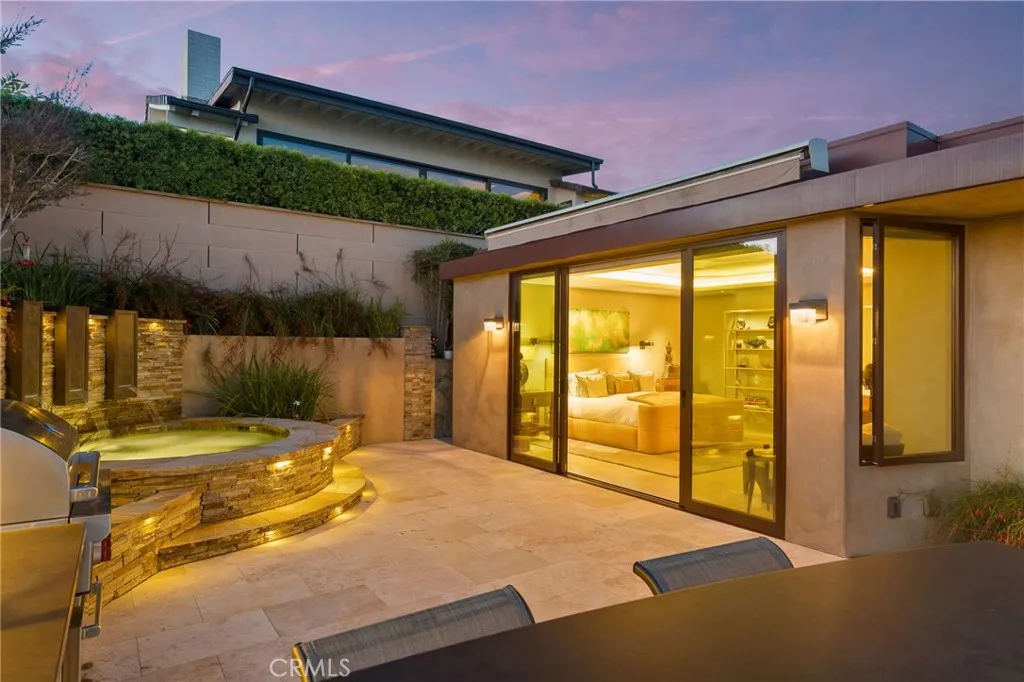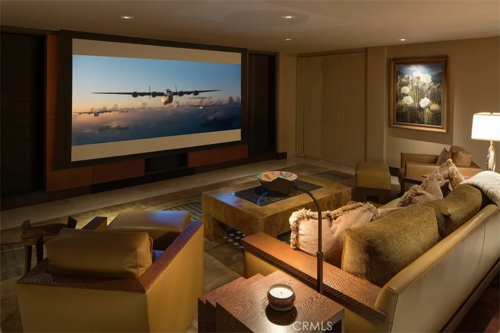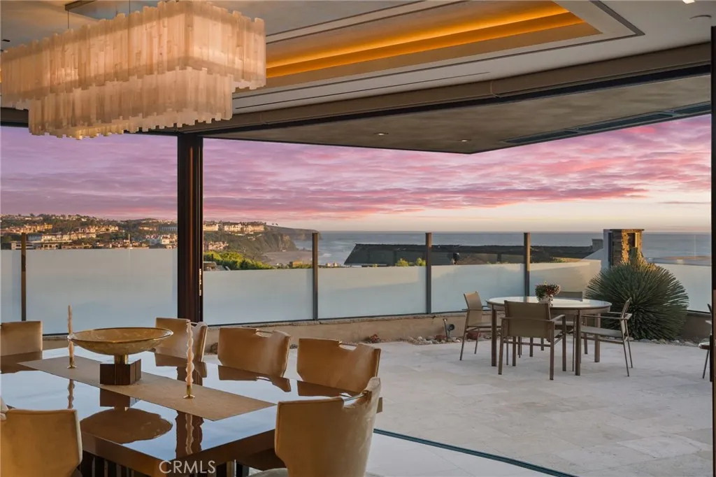 Situated within the prestigious guard-gated enclave of Monarch Bay, 20 Monarch Bay presents an extraordinary coastal retreat showcasing sweeping panoramic views of whitewater ocean, sandy beaches, Dana Point Headlands, the Ritz-Carlton, Monarch Links Golf Course, breathtaking sunsets & sparkling city lights. Completed in 2015 with exceptional craftsmanship, this meticulously designed residence embodies refined coastal luxury with an organic, sophisticated aesthetic. Smooth limestone plaster walls, elegant Crme Marfil marble flooring & curated finishes create a timeless interior, while expansive Nano bifold doors in the living & dining areas open seamlessly to the outdoors, framing spectacular ocean vistas. Custom trey ceilings & a dramatic dual-sided copper & glass fireplace add striking architectural detail. The gourmet chefs kitchen is both functional & artfully designed, featuring a quartz crystal island with bar seating, sleek Arc Linea cabinetry, Silestone countertops & a full suite of Miele appliances. Designed for relaxation & entertaining, the home includes a soundproof, acoustically engineered theatre & family room with built-in audio, drop-down projection screen & wine storage. A comprehensive Crestron smart home system manages lighting, security, whole-house audio & theatre components, while automated shades, solar power, five HVAC zones & a tankless water heater ensure modern comfort & efficiency. The primary suite serves as a private ocean-view sanctuary with direct patio access, a custom walk-in closet & spa-inspired bath with heated floors & towel racks, over