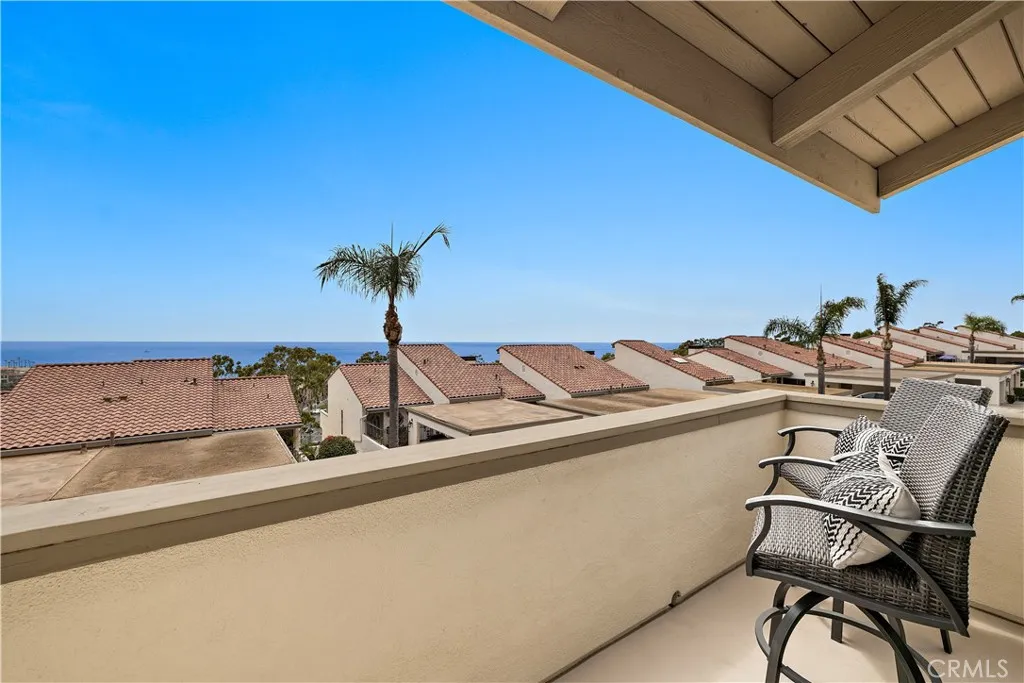 Located in the prestigious enclave of Monarch Beach within the secluded gated community of Monarch Bay Villas, this remarkable ocean-view end-unit villa has recently undergone an extensive and meticulous renovation from top to bottom including new PEX piping, sliding glass doors, new duct & heating system, water heater, recessed lighting, new air conditioner, top of the line whole house water filtration system, Insta Hot water system, new kitchen, new baths, wide plank flooring, custom closets throughout, custom window coverings throughout, new decks, fencing, hard and soft scape, landscaping, irrigation, new fencing and much more. The spacious living room serves as a captivating focal point with its lofty wood-beamed ceilings, inviting fireplace, and, notably, the allure of the large private balcony offering refreshing ocean and golf course views. The expansive gourmet kitchen showcases elegant custom cabinetry, quartz countertops, a large island at its center, and top-of-the-line built-in appliances, including a 42" refrigerator, dishwasher, gas range & oven, disposal and trash compactor. Just off the kitchen, enjoy some downtime in the family room or embrace the indoor-outdoor lifestyle on the well-appointed private patio awaiting you with hard and soft scaping and private hot tub. Upstairs, the primary suite offers a private ocean view balcony. The home boasts white water views of Salt Creek Beach as well as Catalina Island to the Dana Point headlands, the iconic Monarch Beach Golf Links the oceanfront golf course designed by premier golf course architect Robert Trent J