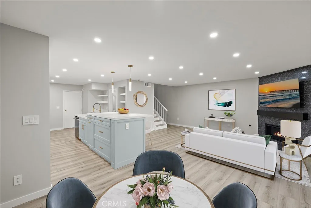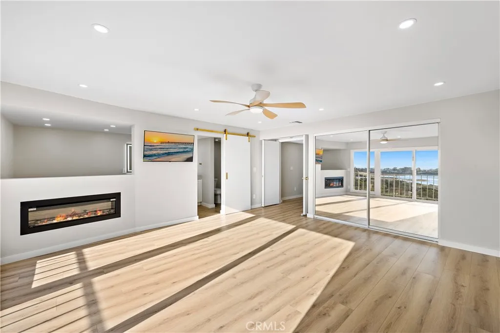 Experience coastal living at its finest in this completely remodeled bluff-front home in the highly sought-after Dana Bluffs community. This rare turnkey property showcases sophisticated design, high-end finishes, and unobstructed views of the ocean and Catalina Island from both levels. The open-concept main floor has been reimagined to capture light and space, featuring a fully remodeled kitchen with structural beam support, custom cabinetry, quartzite counters, under-cabinet lighting, new appliances, and updated electrical and plumbing throughout. The living area centers around a sleek new linear fireplace with a stone surround, while the adjacent dining space flows effortlessly to a private ocean-view patioperfect for morning coffee or sunset gatherings. The main level also includes a beautifully redesigned powder room and a custom-built garage bar area with a wine fridge and smart garage system. Upstairs, the elevated primary suite is a private retreat offering panoramic views, a freestanding soaking tub, a double-sided see-through electric fireplace, a quartzite-topped vanity with LED mirrors, and a spacious Italian-tiled steam shower by Mr. Steam. Two additional bedrooms feature new closets, recessed lighting, and custom finishes, while the hallway bath has been completely updated with quartz counters, new cabinetry, and modern fixtures. Every inch of this home has been upgraded with careful attention to detail, including all-new plumbing, water, and sewer lines; extensive new electrical wiring and a new panel; new recessed lighting, outlets, and switches; and new vin