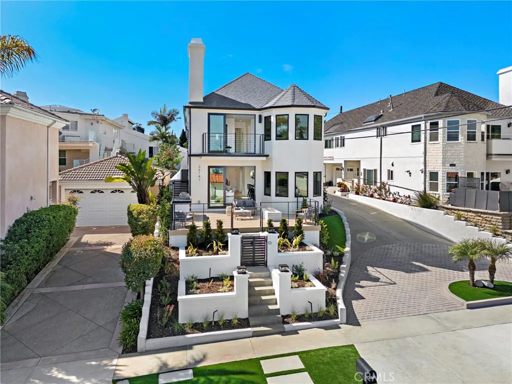 A uniquely reimagined residence, 26141 Via California offers the flexibility of a multi-generational home or duplex, delivering a variety of luxury coastal living options in the heart of Capistrano Beach. Completed in 2025, this fully remodeled property blends modern design, coastal charm, and versatile functionalityperfect for an owner-user, extended family, or a smart investment opportunity. Unit A 3 Bedrooms | 3 Bathrooms:The primary residence welcomes you with an open living area anchored by a cozy fireplace and framed by ocean views. The chefs kitchen features quartz countertops, stainless steel appliances, a pot filler, abundant cabinetry, and a walk-in pantry with wine cooler. A full bath and laundry room with sink complete the main level. Upstairs, the primary suite is a private retreat with a balcony capturing coastal breezes, plus a spa-like bath with soaking tub, frameless glass shower, and dual vanity. Two additional bedrooms with mirrored closets share a full bath, providing flexible space for family, guests, or a home office. Unit B 2 Bedrooms | 2.5 Bathrooms: Thoughtfully designed, the second unit offers a bright, open living and dining space, a powder bath, and a kitchen finished with quartz counters and stainless appliances. Sliding doors open to a private patio with direct access to the detached two-car garage. Upstairs, the primary suite includes a walk-in closet, balcony office nook, and spa-inspired bath with soaking tub and separate shower. A second ensuite bedroom is perfect for guests or a roommate setup, while a stackable washer/dryer in the hall