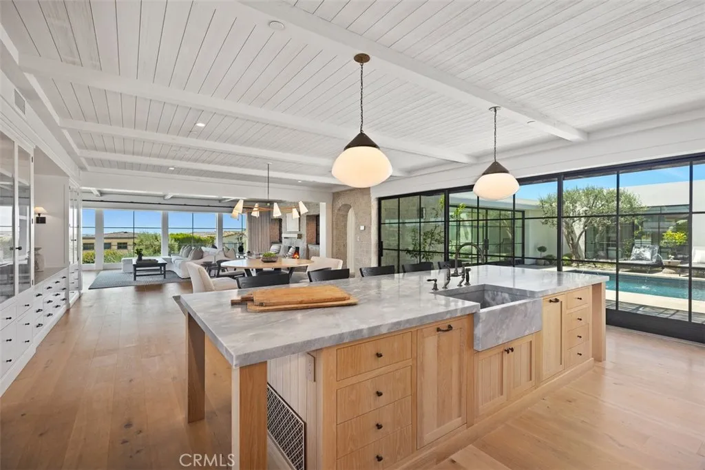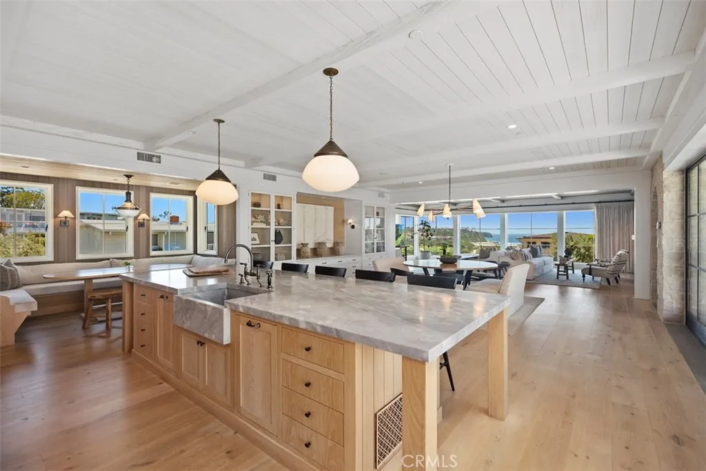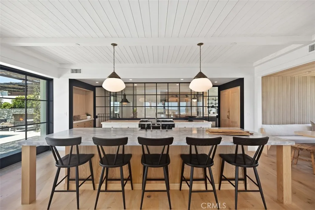 Nestled within the prestigious confines of Monarch Bay, this exquisite estate invites you into a world of unparalleled luxury & timeless elegance. Crafted by the visionary architect & designer Bob White in 2022, this ground-up construction residence seamlessly blends modern amenities with classic charm. As you enter through the guard-gated community, a sense of exclusivity & sophistication envelops you. Monarch Bay's allure is undeniable, with its pristine beaches & access to the esteemed Monarch Bay Beach Club restaurant, where Waldorf Astoria-inspired cuisine awaits. Upon arrival at the residence, prepare to be captivated by the meticulous attention to detail evident in every corner. Carefully curated antique lighting fixtures adorn the space, each with its own story to tell. From the transformed Parisian street light in the front stairwell to the enigmatic German Holophane pendant in the dining nook, these fixtures add a touch of history & intrigue to the home's ambiance. The living spaces welcome you with natural materials like combed cedar wood & limestone walls, within a free-flowing floorplan punctuated by expansive walls of glass & blackened steel which maximizes natural light & seamless indoor-outdoor living. The kitchen is a culinary enthusiast's dream, boasting top-of-the-line appliances, custom white oak cabinets, quartzite & Italian marble accents. Whether you're hosting an intimate gathering or preparing a gourmet meal for friends & family, this space offers both functionality & style. In the primary bath, indulge in spa-like luxury with Waterworks fixtures, a