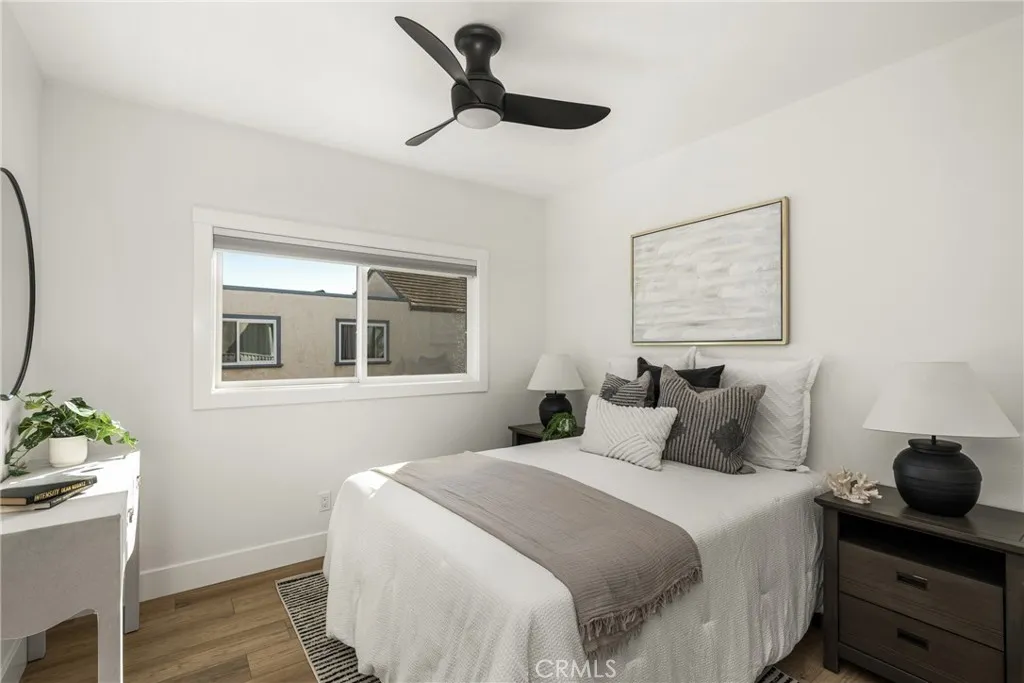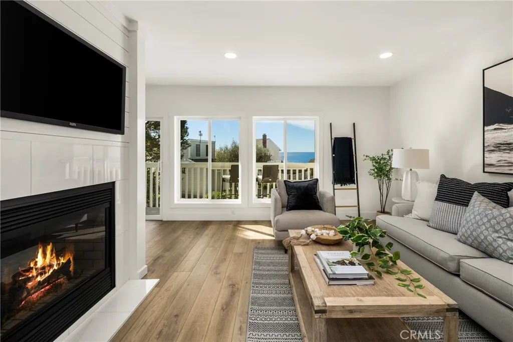 Wake up to breathtaking panoramic views of the Pacific Ocean and Catalina Island from this beautifully remodeled coastal retreat located within a private gated community. This stunning 3-bedroom, 2-bathroom residence blends modern design with relaxed seaside elegance and is a truly turn-key, diamond-quality property.The light-filled interior features wide-plank luxury vinyl flooring, refined shiplap detailing, and thoughtfully designed custom built-ins throughout. The open living and dining areas are anchored by a striking double-sided fireplace, creating a warm and inviting space perfect for both everyday living and entertaining. The kitchen showcases quartz countertops throughout, crisp white cabinetry, stainless steel appliances, and a seamless connection to the main living spaceideal for hosting and daily living. A beautifully designed laundry room adds both style and functionality. The primary bathroom features elegant marble finishes, enhancing the homes spa-like feel. Enjoy indoor-outdoor living with expansive windows and direct access to a private balcony, where sunset, ocean, and Catalina Island views create a breathtaking backdrop for morning coffee or evening relaxation. One of the upstairs bedrooms offers harbor views, adding another unique perspective to this exceptional home. Additional upgrades include newly installed HVAC system, newly installed Milgard windows, and repiping with PEX plumbing, providing modern efficiency and peace of mind. The property offers a one-car garage with epoxy flooring, plus an additional carport for convenient parking. Ideally loc
