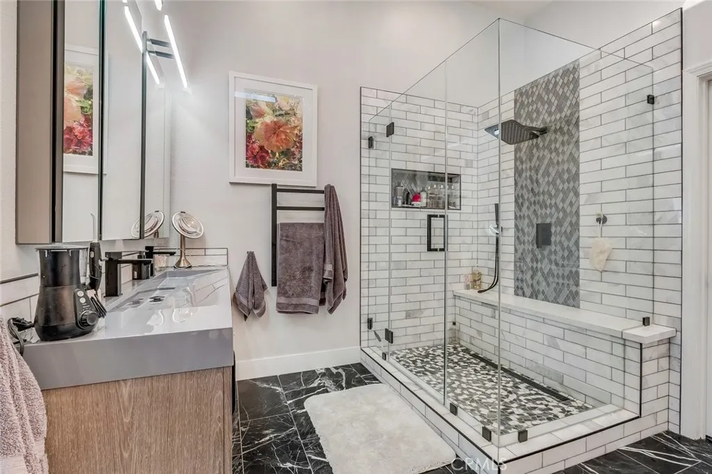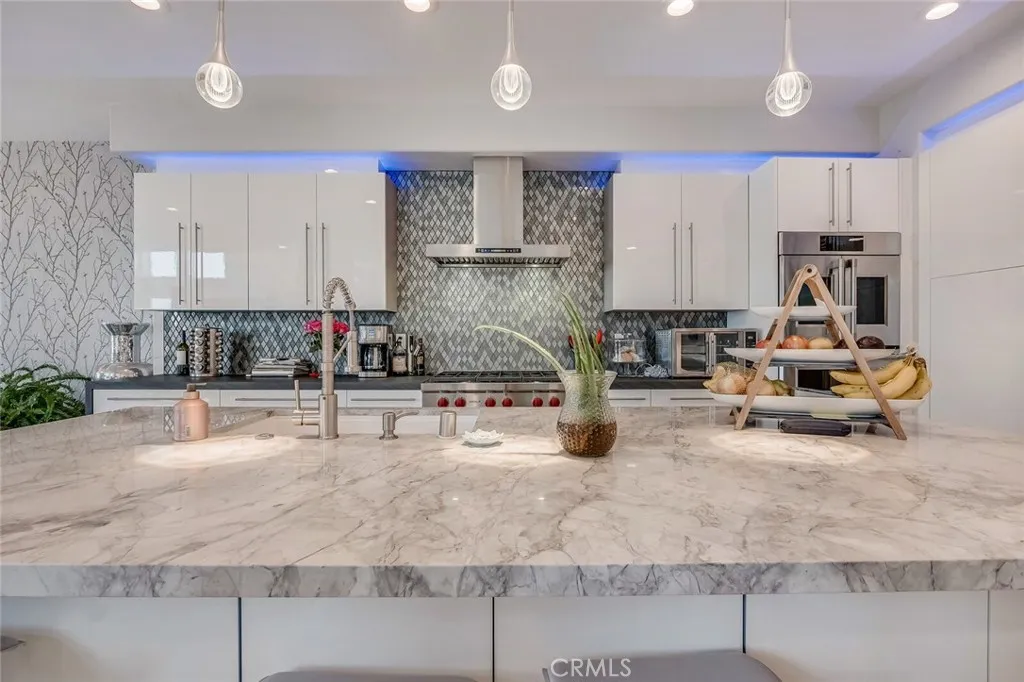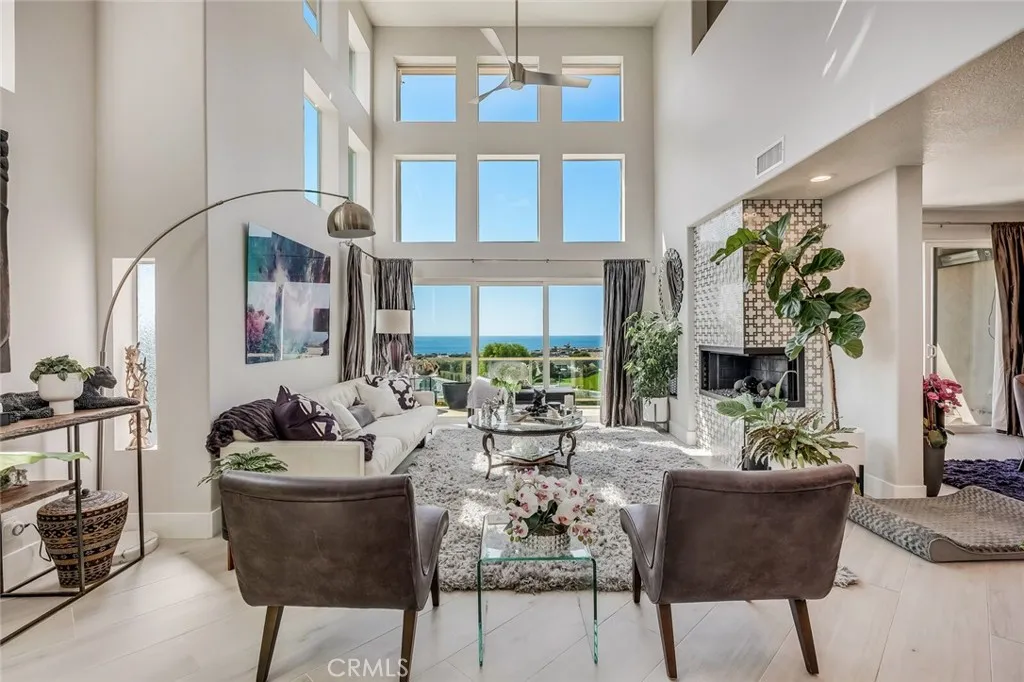 Welcome to Lantern Village, Dana Point with an unbeatable walk to beach location. This luxury coastal residence offers unobstructed views, of Catalina Island, Coastline, the Pacific Ocean and never-ending sunsets. Breathtaking floor to ceiling windows provide a stunning impact of light and water in all seasons. Directly across the street from the coveted Strands beach preserve, Salt Creek beach and easily accessible to the downtown area, shopping, farmer's market, entertainment and nearby Dana Point Marina. 33737 Chula Vista has experienced a complete renovation and will not disappoint at 3,167 sq. ft, 4 bedrooms and 3.5 baths. The open main living floor plan includes living room, dining, a stunning custom glass tile surround, fireplace for intimate gatherings, gorgeous silk Dupioni drapes. The chef's kitchen with a 10ft tailor-made Dolomite stone which resembles marble but more durable, island houses a Thermador dishwasher, Viking microwave and well thought out storage. Italian custom laminate gloss cabinetry, unique Italian overhead pendents, Sub Zero 42" refrigerator, Wolf six burner range and GE Monogram Chef's double oven. Perfectly layered for an extraordinary experience as a guest and superb high end efficiency as Chef, while maintaining the beach-living lifestyle. The dining room displays Vintage wallpaper from the UK, Italian chandelier, ocean view and sliding doors to the outdoor deck. The lower level encompasses an oversized game/media room with glass tile fireplace, wine room, full bathroom and office/bedroom. Sliding doors lead onto a peaceful patio ocean view