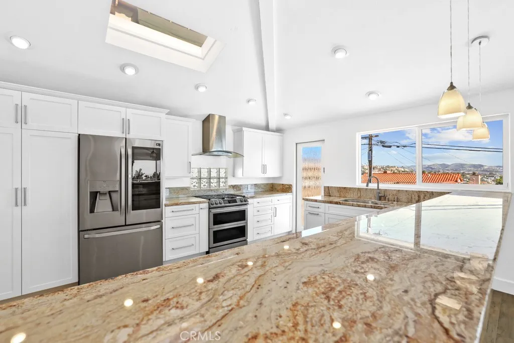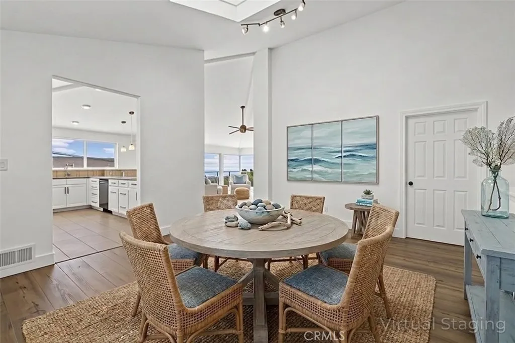 Located in the heart of Dana Points highly sought-after Lantern District, this exceptional property offers a rare opportunity to own a home with breathtaking panoramic ocean views and unmatched privacy. Perfectly positioned on a rare street-to-street lot, this residence captures the essence of coastal living with over 3,100 square feet of thoughtfully designed living space. This beautiful 4-bedroom, 2.5-bath home features a highly desirable main-floor primary suite along with a private pool and spa-an uncommon find in this neighborhood. From the moment you enter, you are welcomed by an abundance of natural light, soaring ceilings, and refreshing ocean breezes that flow throughout the home. The spacious dining room opens to a well-appointed kitchen, complete with ample counter space, generous storage, updated cabinetry, and a comfortable sit-down bar area-perfect for everyday living and entertaining alike. Upstairs, a stunning family room showcases dramatic ceilings, a cozy fireplace, and floor-to-ceiling windows framing incredible sit-down white-water ocean views. On clear days, enjoy sweeping coastal views stretching all the way to La Jolla. This inviting space seamlessly connects to an expansive outdoor deck, ideal for entertaining while taking in the coastal scenery. The main-floor primary suite offers a peaceful retreat with plantation shutters, a large walk-in closet, and a spa-inspired bathroom featuring a soaking tub and spacious walk-in shower. An additional main-level bedroom is generously sized and offers excellent flexibility.The lower level expands the homes ver