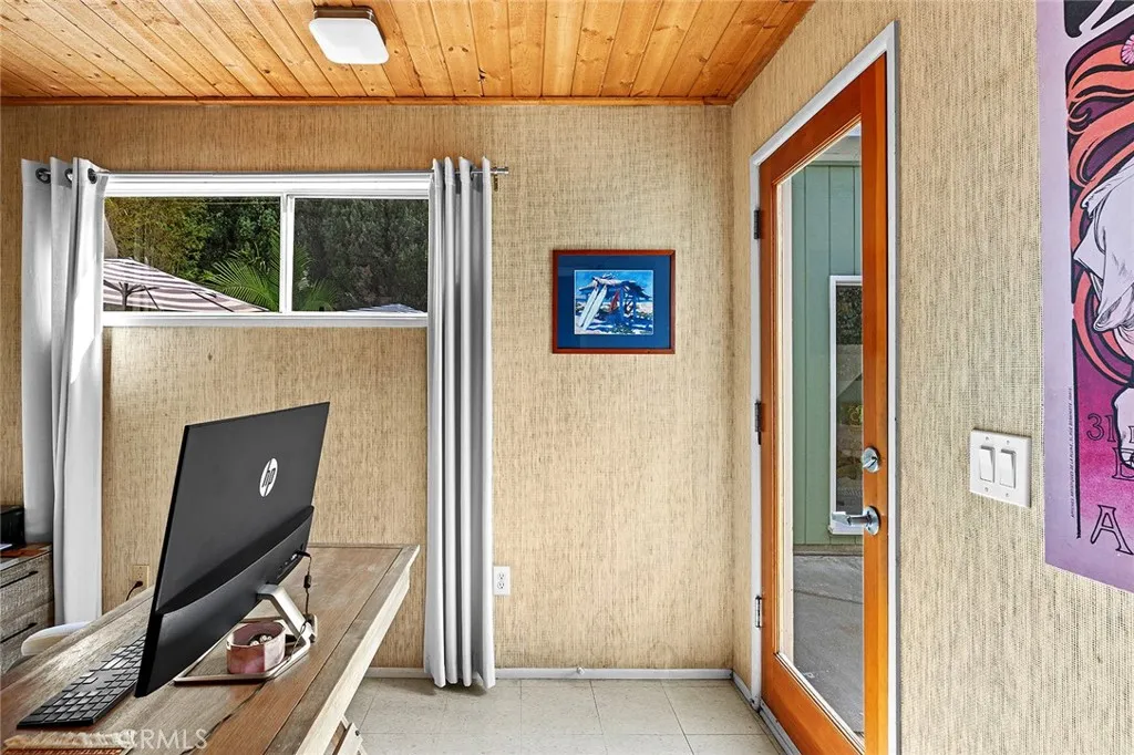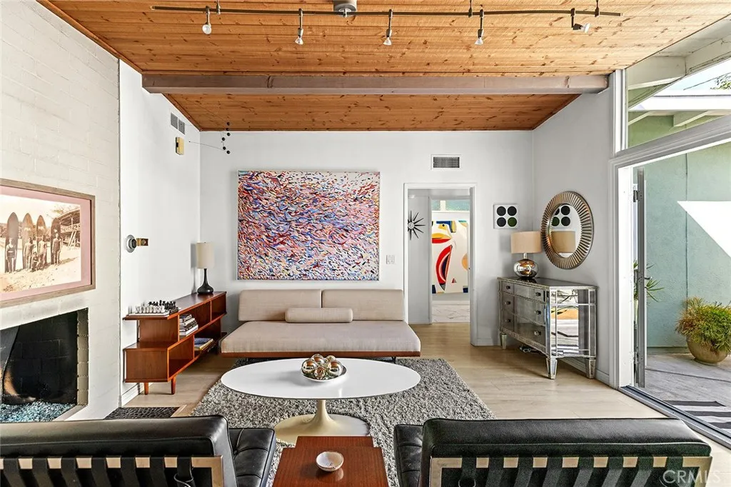 Reminiscent of the iconic architecture in Palm Springs & the Eichlers, this mid-century-modern home awaits in the heart of southern OC's best-kept-secret pocket known as Capo Beach within Dana Point. Upon arrival via the one-way camino, the single level sits elevated off the street up a large driveway with comfortable parking for five cars, plus a two-car garage. Upon entering, several generous living spaces draw you within. Large clerestory windows, high ceiling plates finished in Knotty Pine planks, newer vinyl wood floors throughout most of the home, two updated bathrooms, and an updated galley kitchen make it clear that since its construction in the early 1960s, the property has been maintained and updated in period-correct fashion. The kitchen features stainless appliances and newer improvements including plumbing, cabinetry, and fixtures. Off the kitchen, light-filled informal dining with fitting George Nelson saucer light fixture and two major living spaces - the living room (optional formal dining) with gas fireplace and the family room with high ceilings and large-scale picture windows frame the outdoor spaces beyond. Notable values include newer vinyl windows, French doors, re-roofed (less than 10 years ago), some new plumbing, custom window treatments, new heater & A/C condenser, new water softener, added RO drinking water system, newer tankless water heater, and added saltwater jacuzzi. Recent removal of the rear pergola opened up the patio and mature golden rod bamboo was added at the rear for major privacy. Olive trees were planted at the front to enhance curb