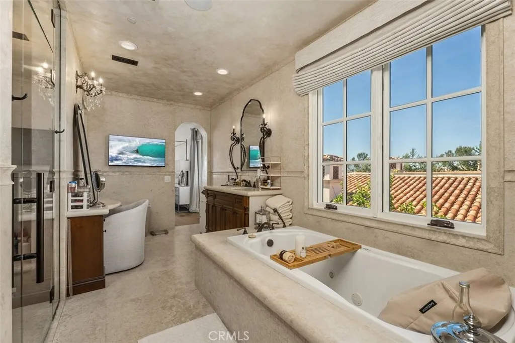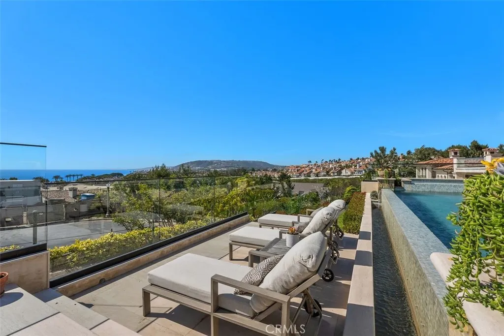 Escape to your own true resort-caliber estate in this elegantly timeless villa, exquisitely crafted in the Mediterranean style and offered **fully furnished** in California's most exclusive guard-gated oceanfront community, The Strand at Headlands. Breathtaking ocean views abound throughout this private retreat, which is graced with bespoke amenities such as an ocean-view salt water infinity pool and spa, stone loggia, sprawling entertaining terrace with outdoor fireplace, fitness/massage room with dry sauna and steam, huge game room with custom billiards table and an 18' full bar, walk-in wine cellar/tasting room, home theater room, outdoor cooking area, and privately gated front courtyard. The property underwent a complete restoration in 2024. The sweeping great room opens the kitchen to formal dining and sitting areas, and features stone floors, colonnades, and barrel-vaulted and beamed ceilings. The kitchen is well-appointed, with multiple sinks, dishwashers and refrigerators, double oven, an oversized stone island bar, a butler's pantry, secondary dining area and ample storage cabinets. The primary suite features 2 view balconies, separate lounge/office, lavish double bathroom, 2 walk-in closets, tray ceiling, and fireplace. All of this is orchestrated on a grand scale encompassing 5 bedrooms and 8.5 baths over 9,000 square feet with 4 garage spaces, 5 fireplaces, 4 balconies, multiple water features, and gardens spanning an oversized lot. Very high ceilings and slide-away glass doors invite natural light throughout the day. Discerning visitors will appreciate the me