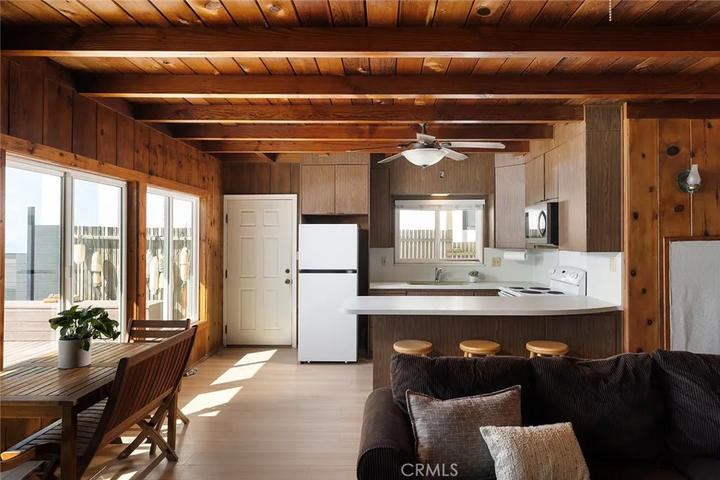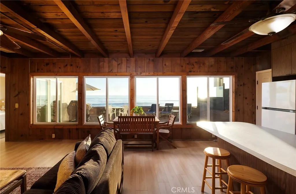 Where classic California lives forever by the sea. Preserved with care and perched directly on the sand, this mid-century beach cottage along Dana Points guard-gated Beach Road offers a glimpse into coastal living as it was meant to besimple, soulful, and endlessly relaxing. Behind the seawall and the sound of the surf, original details tell the story of the homes 1940s heritage: beamed wood ceilings, paneled walls, and a breezy open layout that connects every moment to the ocean just beyond the deck. Wide windows frame Catalina views, while natural light drifts across warm laminate floors and a palette that feels both nostalgic and current. Three bedrooms and two baths unfold on a single level, offering effortless flow from morning coffee to sunset gatherings. The kitchen remains open to the main living areawhere family, friends, and salty air naturally converge. Step outside to the expansive deck and watch the tide roll in from your private stretch of sandyour front-row seat to dolphins, color-soaked skies, and the rhythm of coastal life. Situated halfway between Los Angeles and San Diegobut a world awayBeach Road offers a level of privacy and tranquility rarely found along the Southern California coast. Unobstructed front-row views focus on breaking waves and the azure Pacific Ocean, while Catalina Island, city lights, San Clementes pier, and Dana Points rugged Headlands draw the eye up and down the shore. Homeowners along this exclusive stretch own to the median high-tide line, creating an unmatched connection to the sand and sea. With a single-car garage and four-car p