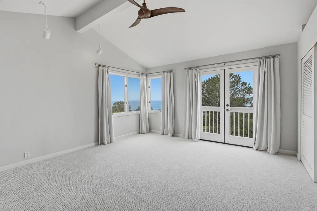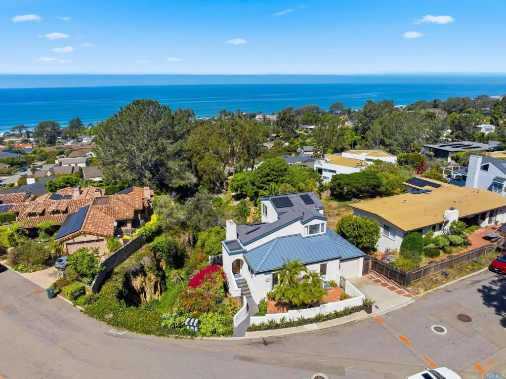 Where the turf meets the surf and offered for the first time, this one-of-a-kind property presents a rare opportunity in the historic town of Olde Del Mar. Originally built in 1954 and thoughtfully reimagined in 1985, this three-bedroom ocean-view home features expansive windows and a generous balcony, which invite the desired blend of indoor and outdoor living. The upstairs primary bedroom, with its own private balcony, is a true sanctuary, and there is also an extra den for a potential home office or gym; leave the space up to your imagination. Adding even more value and flexibility, the property includes an attached one-bedroom guest apartment with a separate entrance, perfect for guests or potential rental income. Both the main home and guest unit are equipped with their own washer and dryer, offering convenience and independence. The design of this unique home provides both privacy and functionality, making it ideal for everyday living or hosting guests. Perched above a stunning canyon with sweeping 180-degree views of the North County San Diego coastline, this home truly captures the charm of Olde Del Mar.