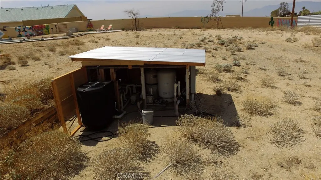 Discover the Elemental Retreat House, a modern home designed by a renowned San Francisco architect and nestled on a 1.25-acre secluded lot located just outside of Desert Hot Springs. This 2000 sq.ft., 3-bedroom, 2 bath home offers tranquility, eco-conscious design and income-generating potential, all just 20 minutes from downtown Palm Springs and a short drive to Coachella. Large double-pane sliding doors positioned, every 8 feet, frame breathtaking 360-degree mountain and desert views. The home is divided into two 1000 sq. ft. wings, connected by a covered central space with pull up door, creating a weather protected indoor/outdoor living area. The main wing houses a guest bedroom with bath, a spacious living room, dining area and fully equipped kitchen. The other wing houses two expansive 450 sq.ft. master suites, featuring 2 sliding doors each that open to spacious covered patios, perfect for morning coffee or stargazing under the desert sky. The innovative double-roof design, with a 5,000-square-foot top roof, shields the home from the desert sun while channeling cooling breezes between the roofs, ensuring comfort even in the hottest months. Wrapped in 18 inches of Styrofoam insulation and clad in elegant cedar, this super-insulated home achieves near-zero energy consumption, complemented by a one-year-old solar system that virtually eliminates electricity costs. The heart of the Elemental Retreat House is its therapeutic mineral water well, delivering odorless, 85F mineral-rich water year-round. Packed with health-enhancing minerals, this water fills the oversized pool