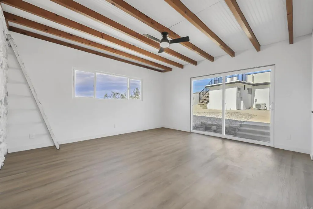 This rare desert retreat sits on 4.75 acres and features a fully renovated main house and ADU, a private natural hot spring pool, a rooftop deck, and horse-friendly zoning. Designed with both lifestyle and investment in mind, the property perfectly balances comfort, versatility, and the tranquility of desert living. The main residence showcases an open-concept layout with beautiful natural light, warm finishes, and a seamless connection between indoor and outdoor spaces, ideal for relaxing or entertaining. The detached ADU includes a full kitchen and private living area, offering flexibility for guests, extended family, or short term rental income. Outside, enjoy your own private resort experience with a natural hot spring fed pool, a standout feature shared by very few private residences in the entire Coachella Valley. The rooftop deck is the perfect place to unwind, take in sunsets, and soak up the spectacular mountain and desert views. With room for horses or future expansion and a location just minutes from Palm Springs and Joshua Tree National Park, this property combines modern living, strong income potential, and the unmatched serenity of the desert lifestyle.