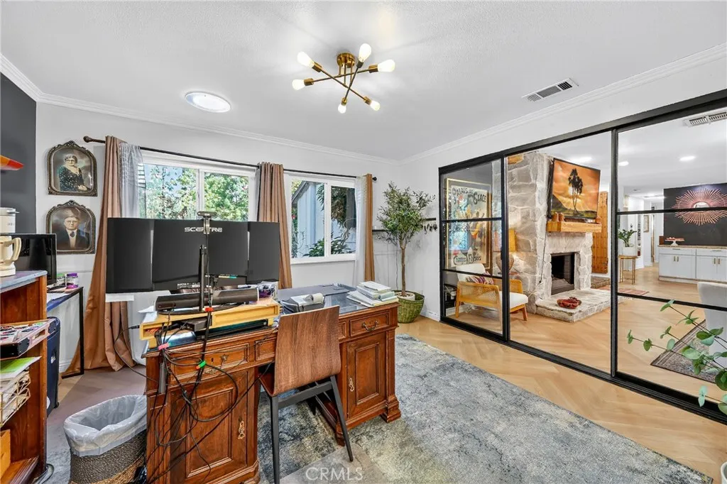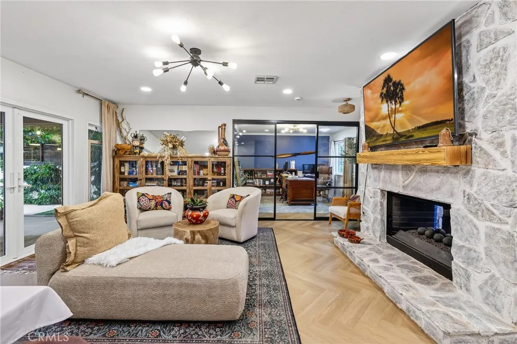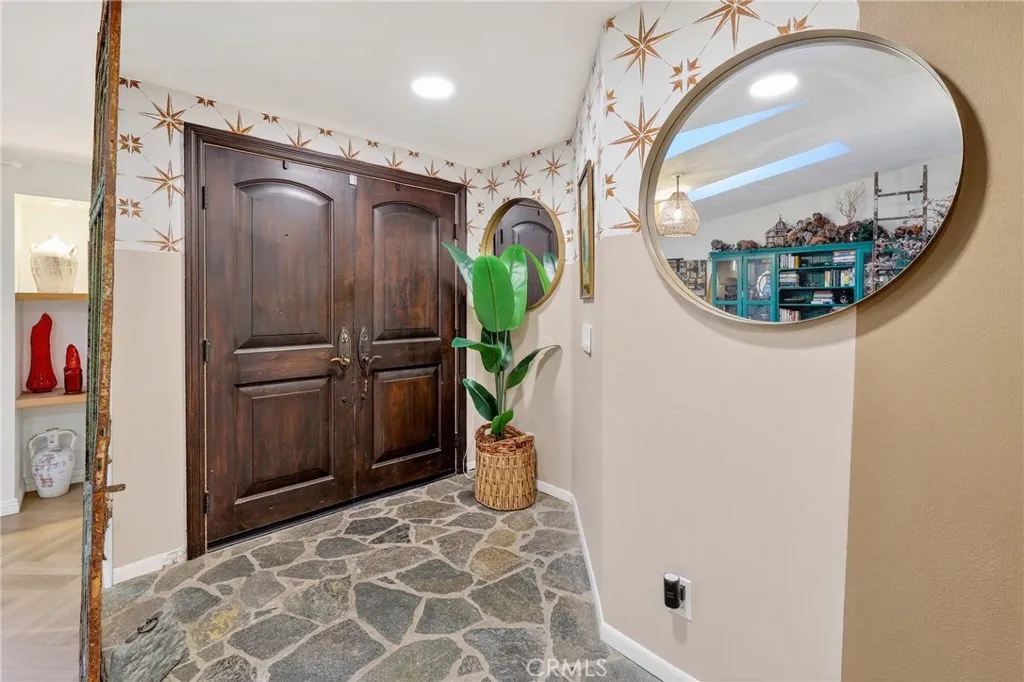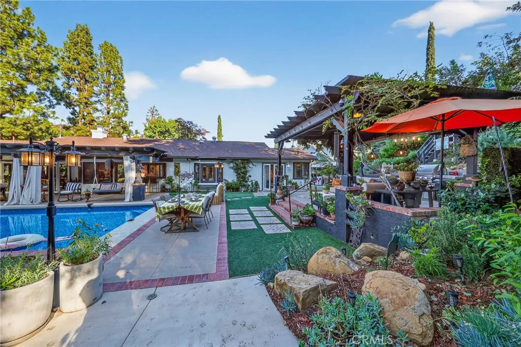 Spectacular charm, serenity & privacy are yours in this unique sanctuary retreat that is a certified National Wildlife Habitat. This property is as individual as you & sits on over 1 acre size lot in one of Diamond Bar most sought after neighborhoods. Prestigious Walnut unified school district is a huge added bonus for this estate. Long, private driveway leads to huge front yard with some stone work & beautifully matured landscaping that the owners spared no expense on! Possible front yard ADU structure with endless possibilities. Amenities galore from rock front patio area to enjoy the sounds of nature as you come into this paradise estate, 5 bedrooms, 3 baths tastefully updated, newer exterior & designer interior paint, Herringbone vinyl plank flooring, crown molding, newer dual pane windows & doors, some French doors, recessed lighting, skylights/solar-tube, large laundry room with sink & more as the list of features is endless. Formal rock entry way opens to step-down formal living room with cozy dual sided fireplace & skylights. Large family room boasts cozy fireplace while highlighting views of the backyard surrounded by nature, beauty, peace & joy. Remodeled chef delight kitchen features Granite counters, SS appliances, water pot filler, farmer sink + opens to dining/family room. Spacious primary suite with double doors leading to one of the many patio areas in the backyard & walk-in closet that has built-in organizers. Primary bath remodeled with dual sinks & walk-in shower. Huge backyard with many fruit bearing trees, low tolerate landscaping, raised viewing deck a