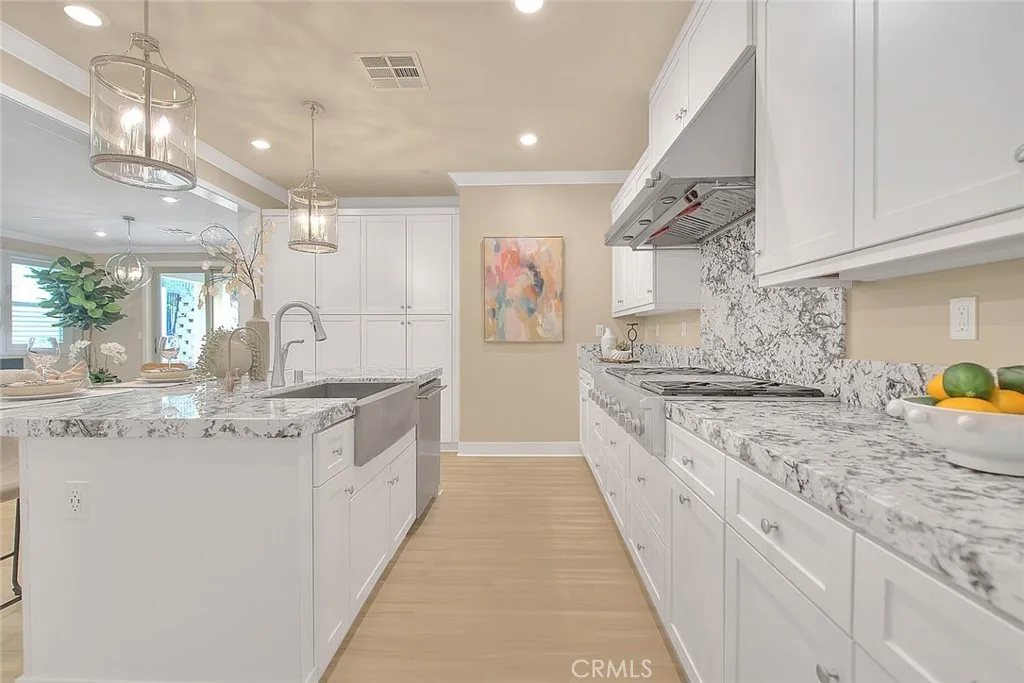 Elegant and luxurious 8 Years new home. Located in a prestigious, south points security gated community with award winning Walnut Valley Unified school district and walking distance to South Point Middle School. New upgraded for laminate wood floor in first floor. New crown molding. New landscaping in side yard & back Yard. Wood shutter through-out Most of windows. This stunning 3 Levels home featuring 5 bedrooms, 4 full bathrooms and 2 half bathrooms. Open concept layout for Great room, in first floor offers classy living and dining Area. One bedroom suite plus Guest Powder Room and kitchen all in the first floor. The gourmet kitchen features granite counter tops, large Center Island with bar counter, Built-in refrigerators, stainless steel, appliances 6 burner stove, Double oven, microwave spacious and luxurious primary bedroom suite on the second floor boasts a walk-in closet and private balcony. The primary bathroom features a dual vanities, granite counter tops; modern bath tub and separate shower room. Another Jack & Jill Bedroom share one full bath room. The Individual laundry room are located in second floor with sink and cabinets. The third floor featuring a spacious entertainment room with large cover balcony, that provides a relaxing outdoor space. One Bedroom suite with picture windows, which can enjoy the city view. Beautiful new landscaping easy to maintenance. Additional highlights include: Dual zoned central air conditioning and heating, two attached garage, smart home technology, smart lock. Tile roof. Leased Solar Panel. Convenient Location close to South