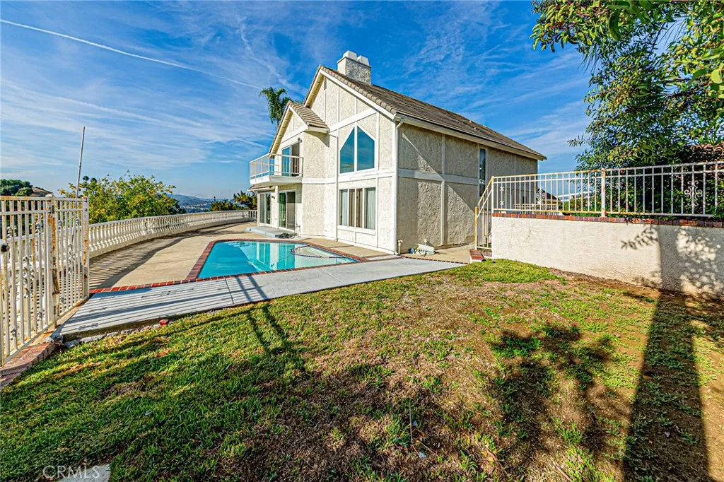 Beautiful Resort-Style Home with Sparkling Pool & Spa and Breathtaking Canyon Views in the Prestigious Country Estates of Diamond Bar! First time on the market in 26 years, this exceptional residence is ideally located near the end of a peaceful cul-de-sac within a 24-hour guard-gated community, offering unmatched privacy, sweeping canyon and mountain views, and access to top-rated Walnut Valley schools. This 4-bedroom, 3-bath home features 3,263 sq. ft. of living space on an impressive 39,145 sq. ft. lot, complete with a private pool and spa. The main level includes a convenient bedroom and full bath, ideal for guests or multi-generational living. Recent upgrades include: New interior paint, New kitchen flooring and ceiling lights, Elegant French doors, Resurfaced pool with new tile. Both the living and family rooms feature a cozy fireplace and a wet bar, creating warm, inviting spaces for entertaining. Upstairs, the primary suite offers panoramic canyon views and a private balcony overlooking the scenic surroundings. The third garage has been thoughtfully converted into an office and storage area, with the flexibility to easily return it to a full garage if desired. Residents enjoy low property taxes, affordable HOA fees, and resort-style community amenities including a clubhouse, swimming pool, horse trails, and courts for tennis, pickleball, and badminton. With exceptional potential to remodel or rebuild, this property represents one of Diamond Bars finest valuesan outstanding opportunity to transform a hidden gem into your dream home or a remarkable investment.