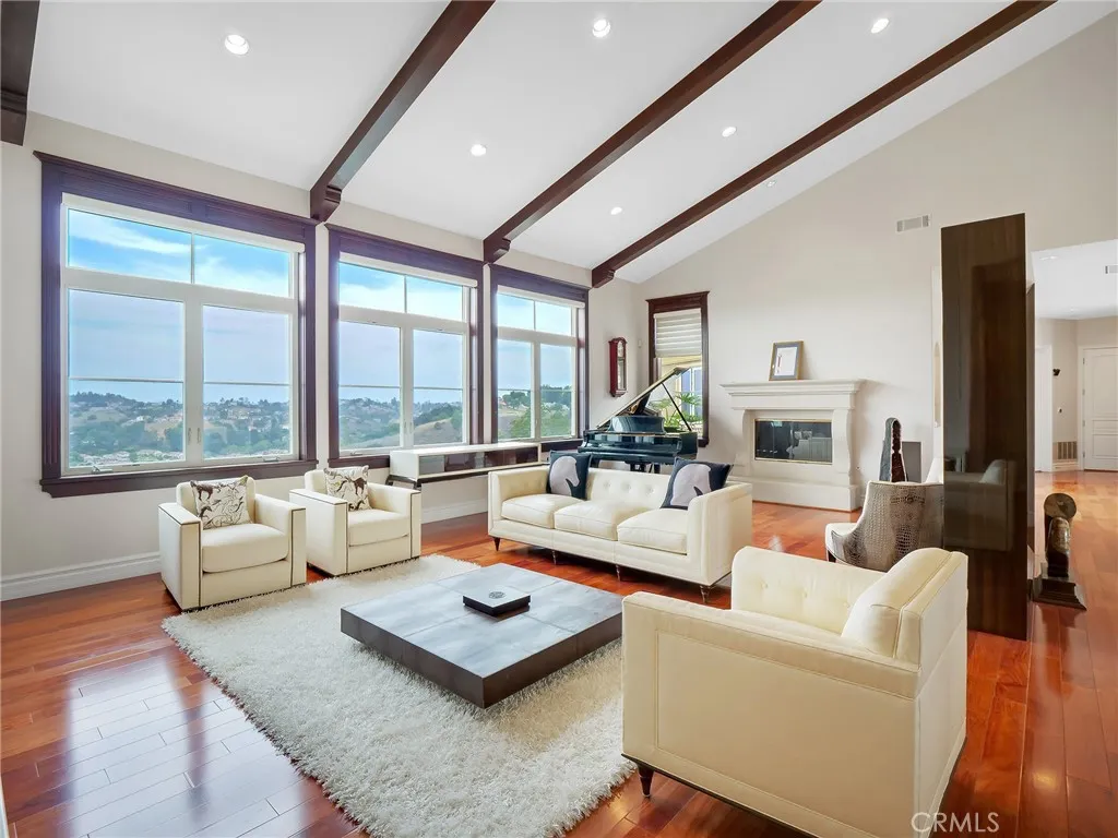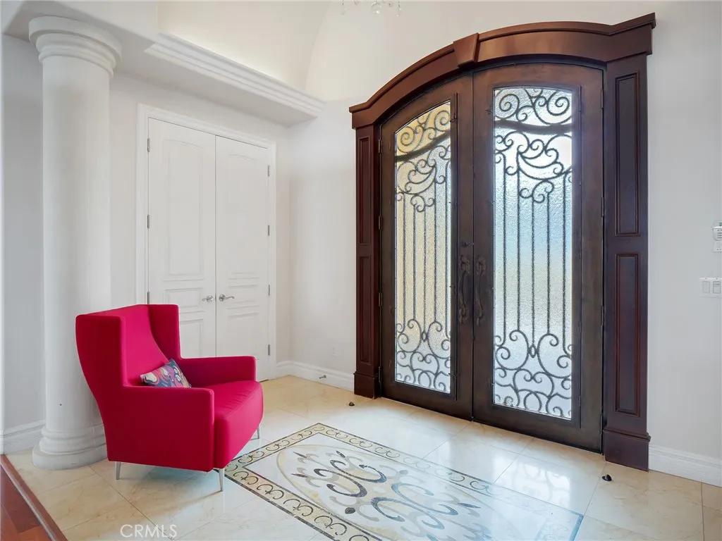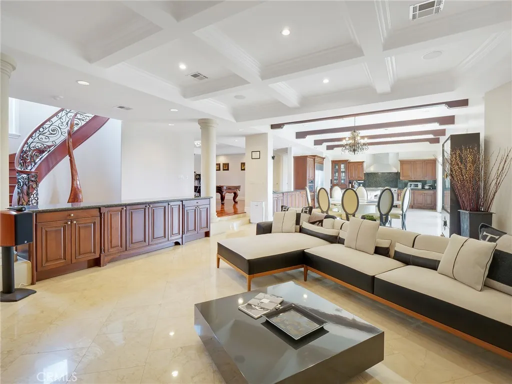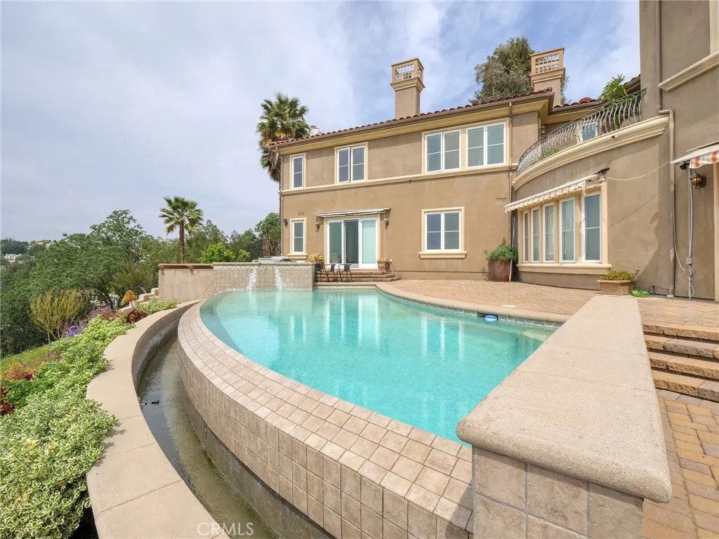 Step into an open view of luxury living at its finest at 22189 Rim Fire Lane, nestled in the coveted 24-hour guard-gated community of The Country in Diamond Bar. This breathtaking custom estate offers unparalleled craftsmanship, stunning views, and an entertainers dream indoor-outdoor lifestyle. With over 6,352 square feet on title and original plan of thoughtfully designed living space on a private 1.03-acre lot, however, it was approx. 6700 SF per original builder, this 5-bedroom, 6-bathroom residence features two full primary suitesone on the main entry level and another on the lower garage levelperfect for multigenerational living or guest privacy. In addition to the bedroom suites, there is a large executive office, multiple entertaining areas, and even a bonus loft with wine cellar. Main Level Elegance Upon entry, youre welcomed by soaring ceilings, dual columns, wrought iron double doors, and a grand formal living area with rich hardwood floors, vaulted wood-beamed ceilings, and a piano lounge. The main level includes the primary master suite with two walk-in closets and a spa-style bath, plus two junior suites, a generous office, and expansive living and dining areas that open to a large balcony with sweeping canyon views. Chefs Kitchen Perfection The gourmet kitchen is anchored by a massive granite island with bar seating and surrounded by warm cherry wood cabinetry. High-end appliances include a refrigerator, professional-grade stainless steel range with double ovens, commercial range hood, and double wall ovens. A dining space and open family room make this the h