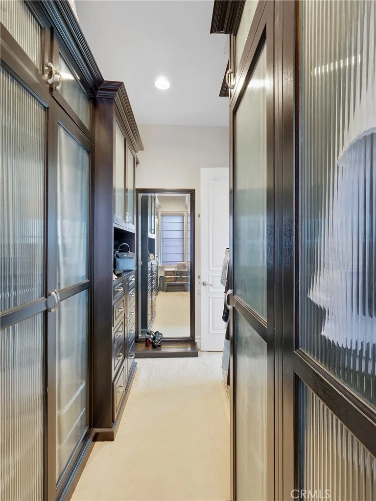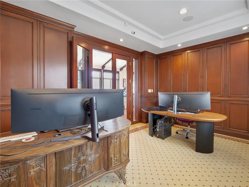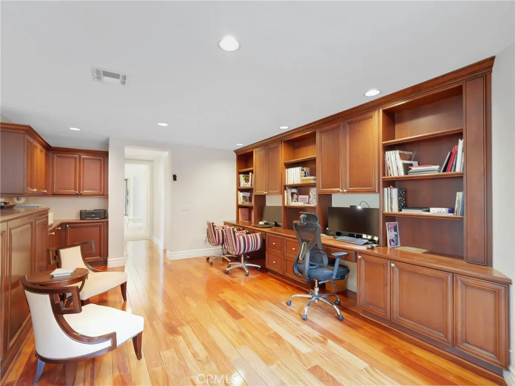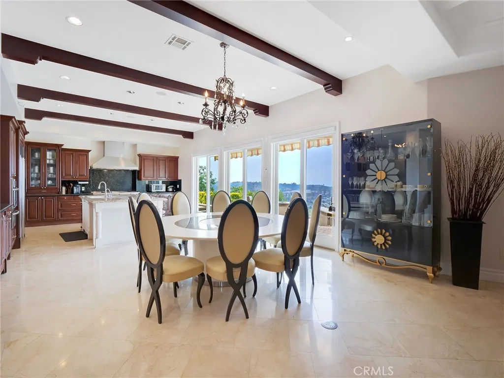 Step into an open view of luxury living at its finest at 22189 Rim Fire Lane, nestled in the coveted 24-hour guard-gated community of The Country in Diamond Bar. This breathtaking custom estate offers unparalleled craftsmanship, stunning views, and an entertainers dream indoor-outdoor lifestyle. With over 6,352 square feet on title and original plan of thoughtfully designed living space on a private 1.03-acre lot, however, it was approx. 6700 SF per original builder, this 5-bedroom, 6-bathroom residence features two full primary suitesone on the main entry level and another on the lower garage levelperfect for multigenerational living or guest privacy. In addition to the bedroom suites, there is a large executive office, multiple entertaining areas, and even a bonus loft with wine cellar. Main Level Elegance Upon entry, youre welcomed by soaring ceilings, dual columns, wrought iron double doors, and a grand formal living area with rich hardwood floors, vaulted wood-beamed ceilings, and a piano lounge. The main level includes the primary master suite with two walk-in closets and a spa-style bath, plus two junior suites, a generous office, and expansive living and dining areas that open to a large balcony with sweeping canyon views. Chefs Kitchen Perfection The gourmet kitchen is anchored by a massive granite island with bar seating and surrounded by warm cherry wood cabinetry. High-end appliances include a refrigerator, professional-grade stainless steel range with double ovens, commercial range hood, and double wall ovens. A dining space and open family room make this the h