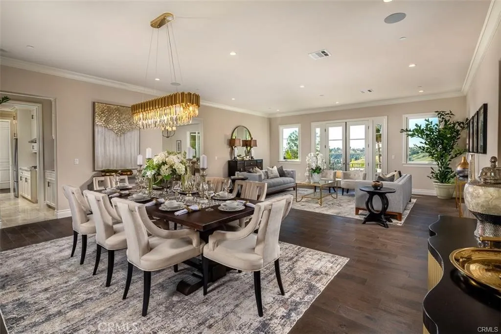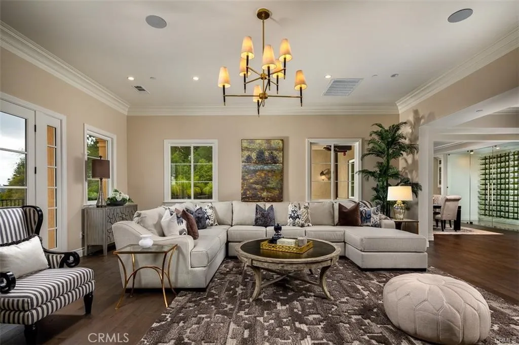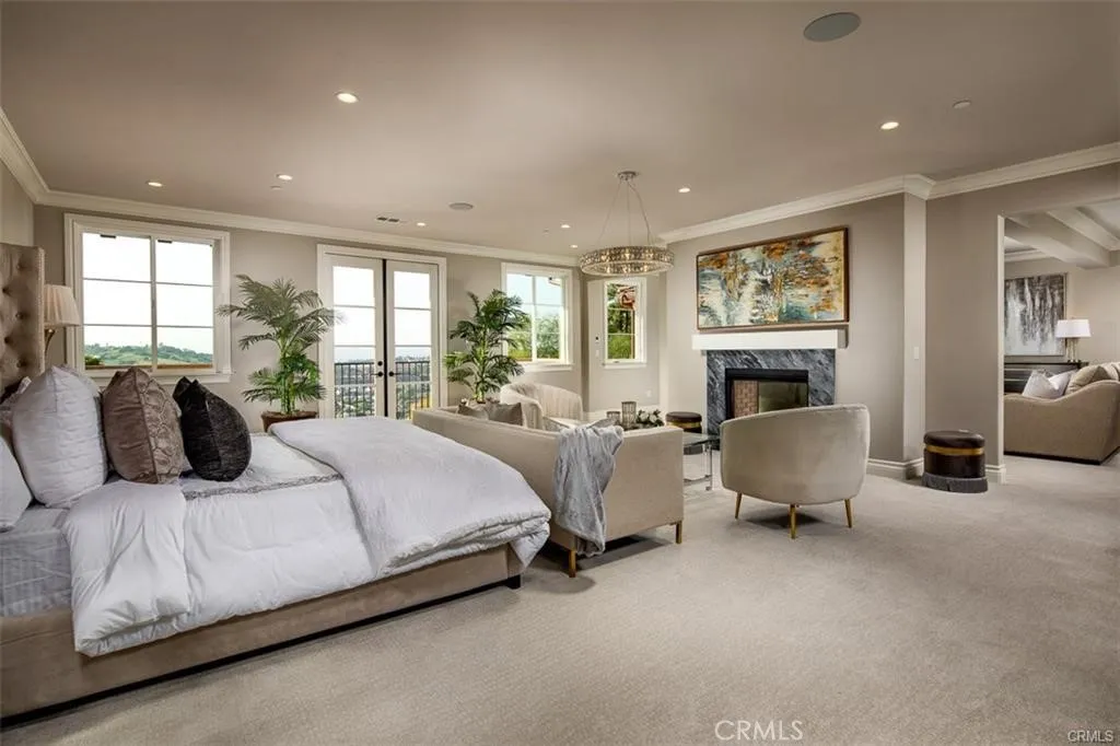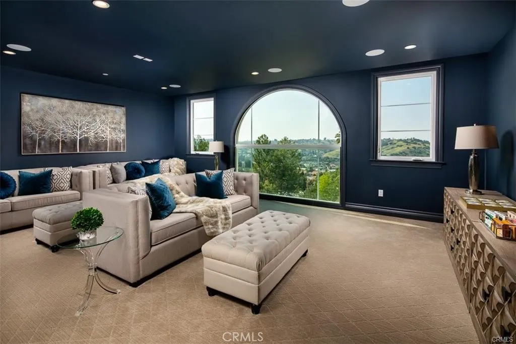 Experience the pinnacle of luxury living in this majestic Tuscan-inspired estate, nestled within the prestigious gated community of The Country Estates in Diamond Bar, CA. Crafted by Grandway, this stunning six-bedroom residence showcases architectural splendor with elegant arches, colonnades, and meticulous details throughout. Situated on approximately 63,000 square feet of meticulously landscaped grounds, this opulent three-story home offers quality finishes and exquisite craftsmanship. Step into the grand foyer through dramatic double doors, where soaring 30-foot ceilings, elegant marble floors, and a beautiful iron staircase welcome you. Entertain guests in the formal living room, boasting French doors that open to a full-length terrace overlooking panoramic city views. Indulge in culinary delights in the gourmet kitchen, complete with a large island, marble counters, custom cabinetry, and high-end Thermador appliances. The main level also features a guest bedroom, study/home office, mudroom, and elevator leading to the upper floors. Upstairs, discover a spacious family room, game room, home theater, laundry room, junior suite, and two additional ensuite bedrooms. The secluded Primary bedroom suite on the top floor offers a private living room, double-sided marble fireplace, and a step-out balcony with breathtaking vistas. Luxuriate in the spa-like Primary bathroom, featuring a freestanding tub set against bay windows, two walk-in closets, his and her vanities, and a steam shower. Additional highlights include hardwood floors, a three-car garage with epoxy floors, three