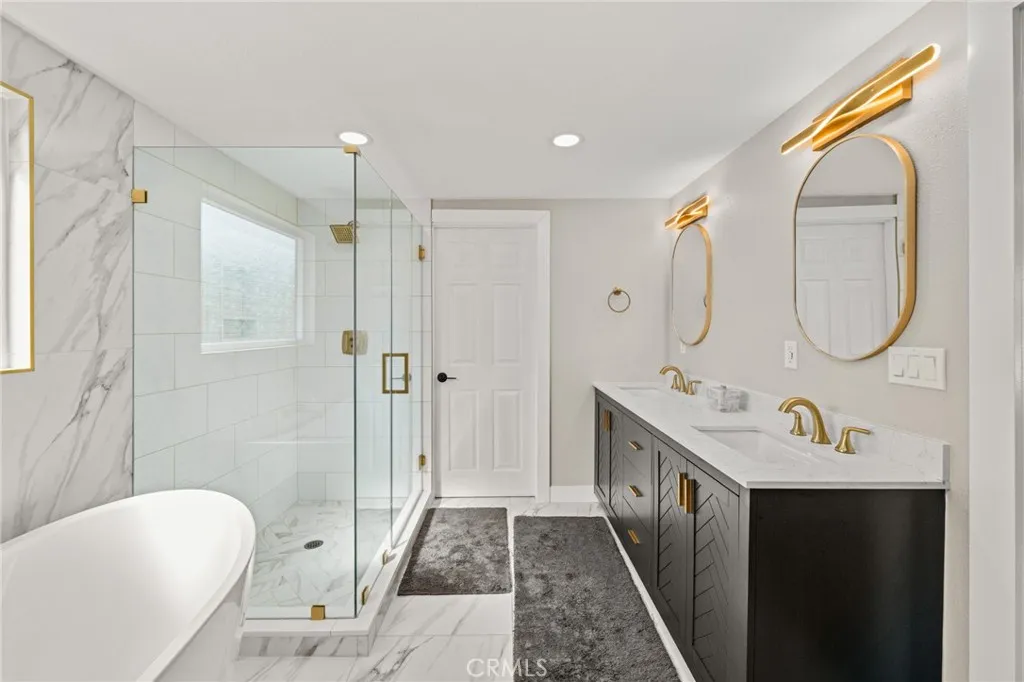 Step into a beautifully renovated home where every detail has been thoughtfully designed for style, comfort and convenience. This home blends modern design with energy efficiency, creating a rare opportunity that's truly move in ready. You are greeted with a new double entry door that leads right into a spacious open-concept layout filled with abundant natural light creating a bright and inviting atmosphere. Enjoy a modern kitchen with quartz counters, waterfall breakfast bar, and new appliances. Bathrooms are fully renovated with upgraded plumbing. Additional highlights include new dual tone windows, recessed lighting, luxury vinyl plank flooring, and custom fireplace surround. A new contemporary garage door with epoxy flooring, a new electrical panel solar ready and Tesla Universal EV charger. Outdoor living shines with a new paver patio with matching garden wall with accent lighting, a new Rachio irrigation system that automatically optimize watering to maintain a healthy lawn. This stunning home has both beauty and functionality and is ready for its next chapter!