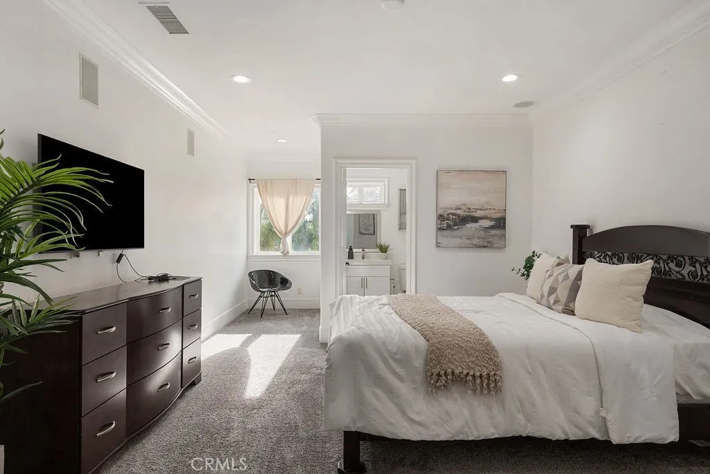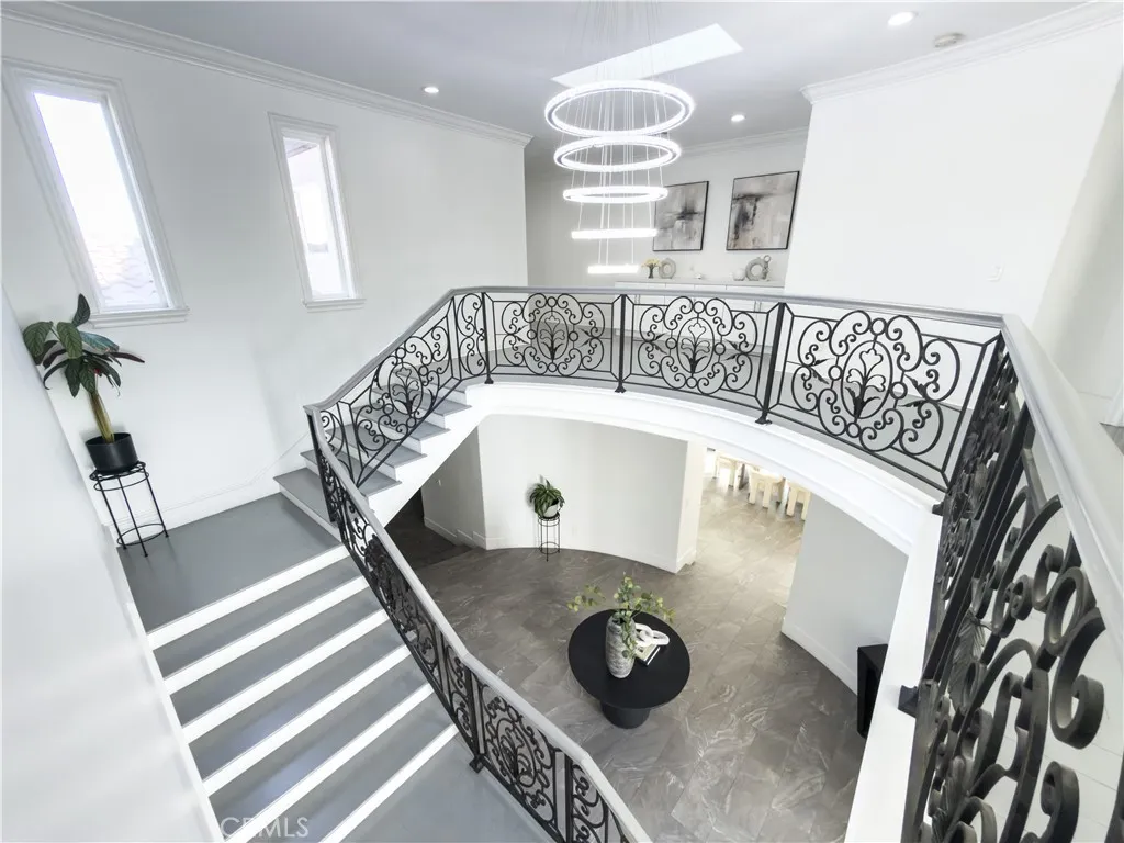 A Rare Opportunity to Own a Modern Luxury Home in Northeast Downeys Most Prestigious Neighborhood! Welcome to this breathtaking Mediterranean-style home, built in 2006 and impeccably upgraded with the finest finishes, offering a rare opportunity to own one of the newest and most luxurious properties in Northeast Downey. Spanning 6,788 sqft on a 10,500 sqft lot, this exceptional residence features 6 spacious bedrooms, 6 luxurious bathrooms, including 2 fully equipped bedrooms downstairs. The open-concept design highlights spacious 10-foot ceilings, creating an expansive and light-filled atmosphere. Porcelain flooring flows seamlessly throughout the main living areas, while custom quartz countertops and showers elevate both style and functionality. Every detail has been thoughtfully curated, from the custom steel front door with upgraded door handles to the fully upgraded bathrooms that showcase modern elegance. Each bedroom in this home boasts its own walk-in closet and en-suite restroom, ensuring ultimate comfort and privacy for all members of the household. The upgraded master suite offers a tranquil escape, with plenty of space and its own fireplace. Not to mention the massive master restroom with two large walk-in closets to match. Step outside onto the expansive upstairs exterior balcony. Ideal for enjoying the warm Southern California weather and stunning views. For the ultimate in convenience and entertainment, this home is equipped with a central audio system, recessed lighting, and epoxy garage flooring. The gourmet kitchen features top-of-the-line appliances, inclu