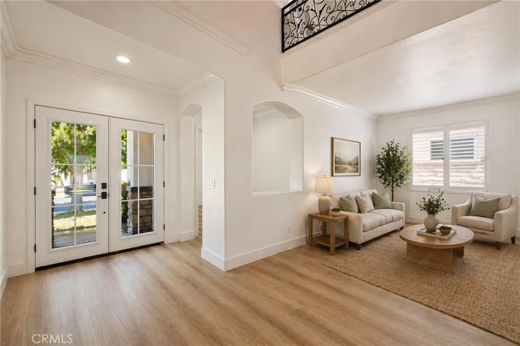 A rare opportunity in Eastvale, this beautifully upgraded and move-in ready home offers the perfect blend of space, comfort, and energy efficiency. A major standout is the fully PAID-OFF solar system, providing immediate energy savings and long-term value. Designed for both comfort and flexibility, the home features a highly desirable layout with a full bedroom suite on the first floor, ideal for guests, in-laws, or a private office. Inside, youll find a stylishly updated interior showcasing new flooring, a custom steel staircase railing, and a modern chandelier, complemented by crown molding throughout and plantation shutters on all windows. The kitchen and bathrooms have been tastefully upgraded with quartz countertops, creating a clean and contemporary feel. Upstairs, the expansive loft offers incredible versatility, perfect as a second living area, media room, kids play space, or easily convertible into a potential sixth bedroom. The backyard provides a private and relaxing setting with mature fruit trees, including lemon, orange, and persimmon, ideal for enjoying fresh fruit at home or entertaining guests. Conveniently located within walking distance to Orchard Park and situated in a highly rated school district, this home offers the perfect balance of comfort, efficiency, and location.
