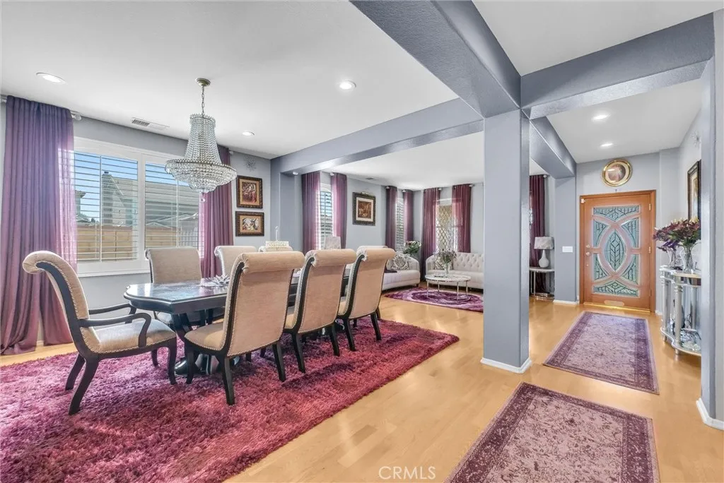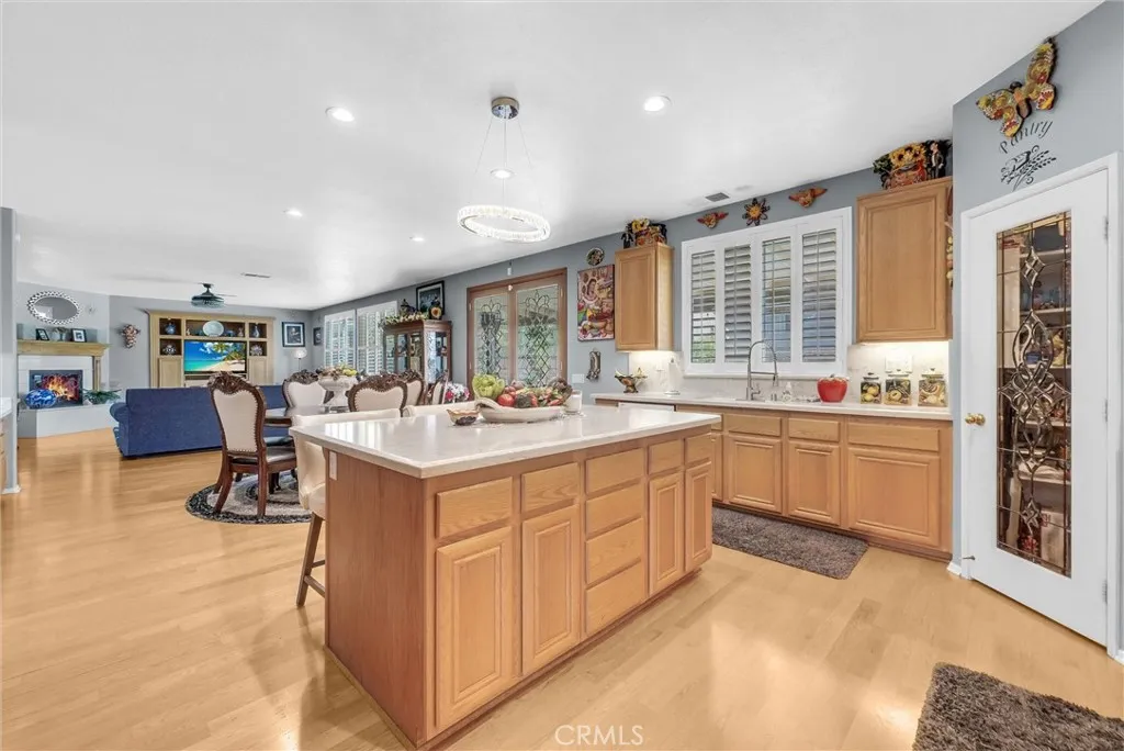 PRICE ADJUSTMENT on this Absolutely Gorgeous Riverbend Corner Lot Pool Home 5 Bedrooms, 4 Baths, 4,220 Sq Ft of Luxury and Pride of Ownership This impeccably maintained two-story home is a must-see! Located on a desirable corner lot in a great area of Eastvale, This home offers 4,220 square feet of elegant living space, featuring 5 spacious bedrooms and 3 full bathrooms. Beveled glass accents throughout add a touch of sophistication. A generous size bedroom and full bathroom are conveniently located on the main floorperfect for guests, in-laws, or a home office. The main floor also includes an individual utility/laundry room for added convenience. The gourmet kitchen is a chefs dream, showcasing a granite island, walk-in pantry, KitchenAid appliances, and beveled glass cabinet doors. Adjacent to the kitchen is a built-in desk and a huge great family room complete with a elegant marble fireplace and custom entertainment center. Upstairs, youll find a HUGE loft/bonus room that can be transformed into a home theater, game room, or anything you envision. 4 additional bedrooms upstairs and 2 share a Jack-and-Jill bathroom, while elegant crown molding and beautiful flooring enhance the space. The luxurious primary suite features a large walk-in closet, a second closet, and an en-suite bath with marble flooring, dual sinks, a soaking tub, and a separate shower. Plantation shutters and ceiling fans throughout the home provide both style and privacy. Step outside to your own backyard paradisecomplete with a beautifully designed sparkling pool, rock waterfall, jacuzzi, built-in BBQ,