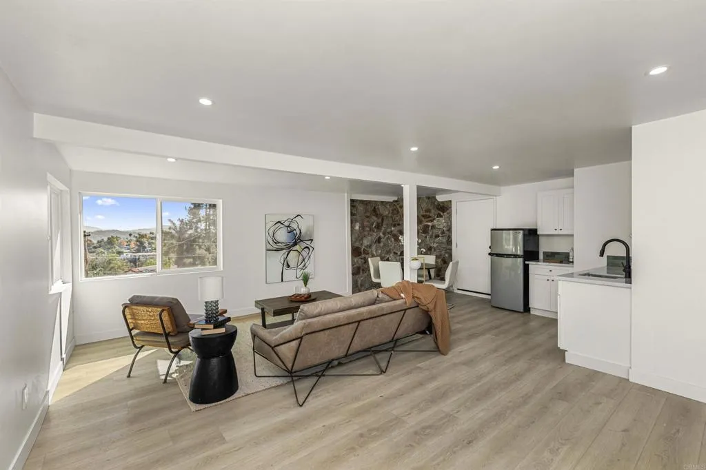 Welcome to this exceptional Fletcher Hills residence. Meticulously remodeled and tucked away at the end of a quiet cul-de-sac, this stunning 4-bedroom, 3-bath home showcases breathtaking canyon views and a thoughtfully designed layout ideal for modern living, entertaining, and multi-generational flexibility. Adding tremendous value is a **Detached Studio** complete with a kitchenette and bathroomperfect for guests, a private office, creative space, or potential rental income. The main residence features an open, light-filled floor plan enhanced by high-end finishes and designer details throughout. The chefs kitchen is equipped with beautiful Lumataj Quartz Countertops and top-of-the-line appliances, seamlessly connecting to the main living areas for effortless entertaining. The bathrooms are elegantly finished with warm Zellige tile, adding timeless character and sophistication. There is also a finished basement with a full shower as additional flexible space ideal for a gym, media room, or bonus living area. Outdoor living truly shines at this property. Enjoy a large entertainment deck, ideal for gatherings while taking in the peaceful canyon backdrop. A newly installed low-maintenance turf pad adds to the outdoor appeal, while a rare, nearly flat and expansive pad offers endless possibilitiescreate a large backyard, add an ADU, or design the outdoor oasis of your dreams. Located in a top-rated school district and just minutes from shopping and dining. With premium upgrades, stunning views, and exceptional future potential, this Fletcher Hills gem is a rare opportunity to