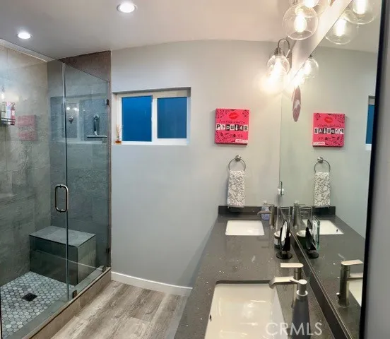 Incredible El Segundo Eastside home on an ample-sized lot in an excellent location, fully remodeled and featuring 3,404 square feet of living space across two levels. This energy-efficient home includes paid-off solar panels and dual AC/heating heat pumps. The upper level offers four bedrooms, two full bathrooms, a spacious kitchen with included appliances, a separate living room, and dining room. The lower level includes three additional bedrooms, two full bathrooms, a family room, and a large entertainment area with a fireplace. The expansive primary suite boasts a walk-in shower, walk-in closet, fireplace, and private access to the lush backyard, which is surrounded by greenery and fruit trees. Additional highlights include a 2-car garage with direct street access and convenient proximity to nearby freeways.