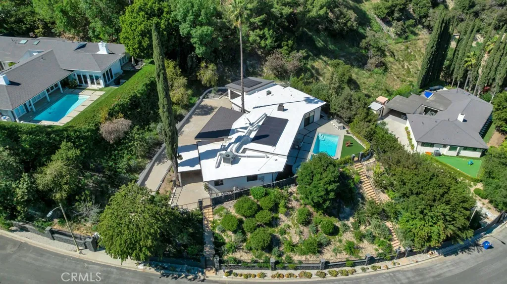 Rare Opportunity: The Ultimate View Estate in Encino! Experience the perfect harmony of Mid-Century soul and modern luxury in this single-story masterpiece. Located South of Ventura Blvd in the prestigious Royal Oaks enclave and the award-winning Lanai School District, this estate is a true hidden treasure. Your journey begins at the end of a long, gated driveway, offering a peaceful and private entrance with plenty of parking, a two-car garage, and a covered carport. Inside, this expansive home features 5 bedrooms and 4.5 baths, thoughtfully designed with comfort and functionality in mind. The primary suite offers a walk-in closet and a beautifully designed bathroom with double vanity sinks and a separate shower and tub. The living room within a bright and open floor plan is a beautiful showcase of modern design, where high ceilings and large stacking glass doors frame breathtaking, wide-open views of the valley. For the cook, the Gourmet Chefs kitchen offers top-tier materials, plenty of counter space, and a stunning glass wine cellarperfect for a modern lifestyle where luxury meets everyday use. Your clients will love the "Zero Utility Bill" potential with the fully paid-off solar system and the peace of mind from the newly coated roof. Every detail is built for comfort, including brand-new motorized blinds that come with a lifetime warranty. The backyard is a private escape, featuring a sparkling swimming pool and a raised hot tub made for relaxing while taking in the views. Surrounded by a large patio, it is the perfect spot for enjoying the sun and hosting outdoor din