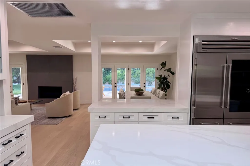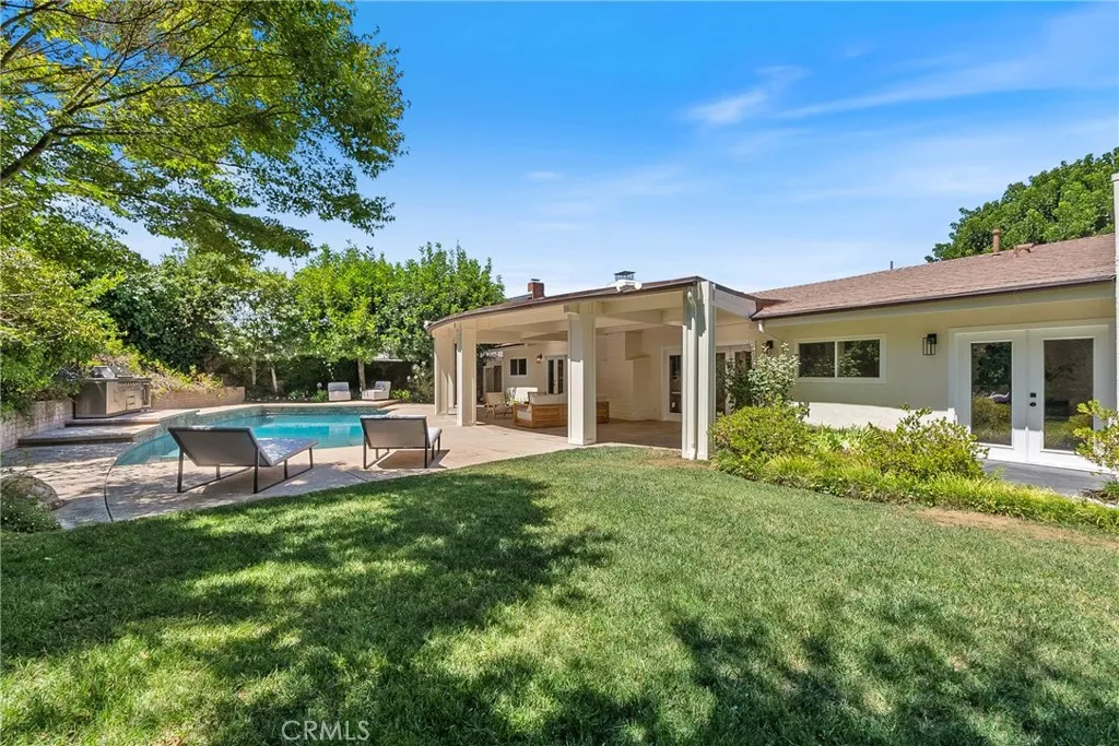 REDUCED 100K! Welcome to one of Encinos most prestigious and sought-after enclaves. Perfectly situated in the coveted Lanai Road School District, this stunning single-level modern mid-century estate offers the ultimate blend of privacy, location, and styleideally nestled between the Westside and the Valley. As you approach the home, youre greeted by a serene covered porch and a Zen-like fountain, setting the tone for what lies inside. Spanning over 3,550 square feet, this thoughtfully designed residence features 5 bedrooms and 6 bathrooms, all situated on an ultra-private, beautifully landscaped lot. Inside, natural light floods the open floor plan through skylights, and the stylish mid-century character that defines the home. The chefs kitchen is a true showstopperfeaturing a massive quartz center island, top-of-the-line Wolf range, Sub-Zero refrigerator, full sized wine refrigerator, custom walk-in pantry with floating shelves, and sleek steel-and-glass sliding doors. The living room boasts a dramatic floor-to-ceiling fireplace with doors that open directly to the tranquil yard. The primary suite is a true luxury retreat, offering its own fireplace, heated towel racks, remote-control toilets, dual walk-in closets, and two en-suite bathroomsyes, two! A private guest room with its own adjacent bath completes the homes thoughtful layout. Step into your own personal resort in the backyard, complete with a sparkling pool, cascading waterfall, lush green lawn, and an oversized covered patiodesigned for serious lounging and effortless entertaining. Fire up the grill in the outdo