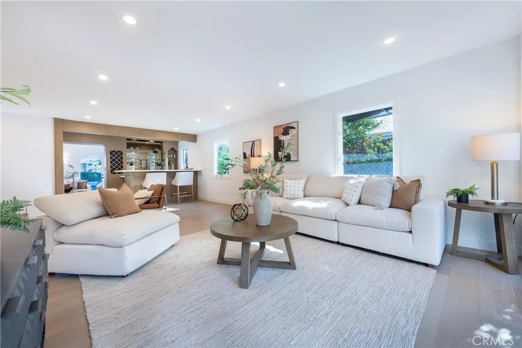 This reimagined Spanish Transitional located on nearly half an acre within the Lanai School District is a stunning fusion of architectural soul and modern sophistication. Double doors unveil a dramatic formal entry and a luminous open floor plan anchored by wide-plank wood floors, bespoke built-in niches, and striking beamed and cathedral ceilings. The living room is crowned by a stone-encased fireplace and framed by walls of glass that reveal an intimate patio/courtyard ideal for relaxed luxury. Designed with both artistry and functionality in mind, the chefs center-island kitchen boasts generous seating and storage, stone counters, soft-close cabinetry, and a suite of premium appliances, including a Wolf 6-burner range and stove. The adjoining family room, complete with a refined wet bar and wine fridge, elevates everyday living and effortless entertaining. The formal dining room showcases designer pendant lighting, plantation shutters, and tranquil views of surrounding greenery, an elegant setting for gatherings. The homes private spaces are nothing short of exceptional, with five en-suite bedrooms plus a chic powder room and secondary bedrooms featuring pro-organized closets. The luxurious primary suite serves as a serene sanctuary, featuring a cozy fireplace, dual sets of French doors opening to a secluded balcony, and an expansive, professionally curated walk-in closet with its own wine fridge. The spa-inspired bath exudes resort-level indulgence with a soaking tub, dual-person rain shower with built-in seating, dual vanities, privacy toilet, and an additional private