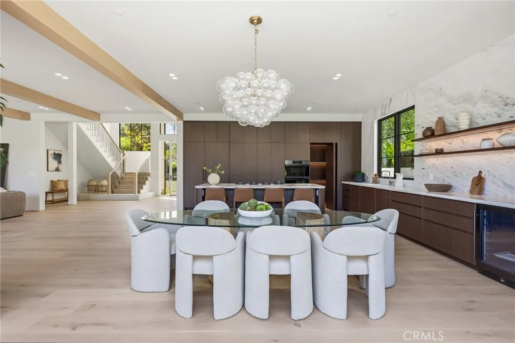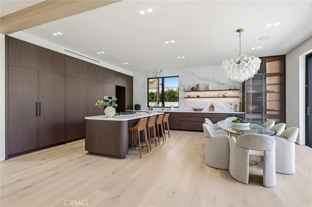 Welcome to a stunning newly constructed estate in the highly sought-after Hesby Oaks neighborhood of Encino, where modern luxury and thoughtful design come together to create the ultimate California lifestyle. This exceptional residence offers 6 spacious bedrooms plus a private movie theater, delivering an ideal layout for both everyday comfort and elevated entertaining. Upon entry, soaring ceilings, wide-plank hardwood floors, and expansive walls of glass greet you, flooding the home with natural light while creating seamless indoor-outdoor flow. The open-concept living spaces lead into a designer chefs kitchen featuring top-of-the-line appliances, custom cabinetry, an oversized center island, and a hidden walk-in pantry that adds both functionality and a sleek, refined aesthetic. Pocket sliding doors open effortlessly from the main living areas, creating a seamless transition to the backyard and enhancing the homes indoor-outdoor lifestyle. The thoughtfully designed floor plan includes generously sized bedrooms, and a luxurious primary suite retreat complete with a spa-inspired bathroom and an expansive walk-in closet. Step outside to an entertainers dream backyard, featuring a sparkling pool with an elevated spa, spacious lounging areas, and a fully equipped outdoor kitchen perfect for hosting and dining al fresco. Situated on a gated property along a quiet, tree-lined street in the coveted Hesby Oaks neighborhood, the home offers both privacy and tranquility while remaining just moments from Ventura Boulevards premier shopping, dining, and entertainment. A rare opportun