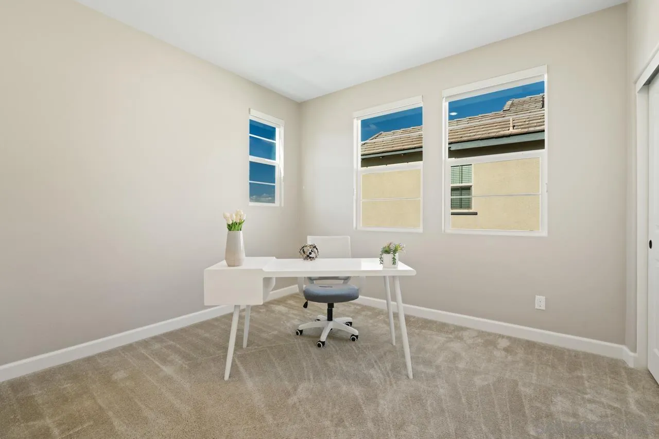 Move in Ready! This beautifully designed detached home offers the perfect blend of contemporary style, smart home technology, and energy efficiency, including fully owned solar and a garage wired for electric vehicle charging. The thoughtfully designed floor plan offers designated spaces for every lifestyle need while maintaining an open-concept layout on the main level—ideal for entertaining and everyday living. Enjoy parks, walking trails, pool and a upgraded luxury vinyl plank flooring downstairs and plush high-end carpet upstairs, complemented by fresh interior paint, stylish hardware, and designer lighting throughout. The gourmet kitchen features sleek stainless steel appliances, making meal prep both elegant and efficient. Step outside to your private, fully hardscaped backyard oasis—perfect for pets, play, or relaxing under the glow of market lights. The professionally landscaped front yard frames scenic hill and mountain views, creating a tranquil and welcoming curb appeal. As a resident of a highly sought-after community, you'll have access to resort-style amenities including a pool, spa, fitness center, playgrounds, sports courts, scenic walking trails, and a charming event barn. With its prime location, premium features, and exceptional design, this turnkey home is a rare find.