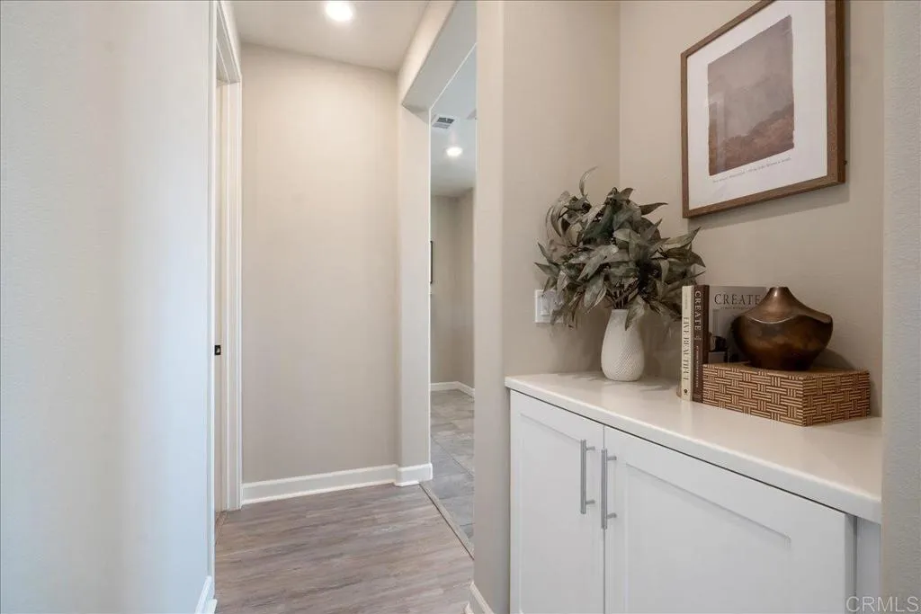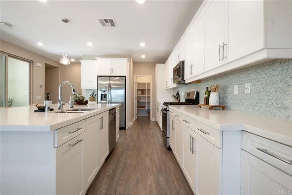 Peacefully situated in the rolling hills of Escondido, this Harmony Grove Village 2018 built home delivers that away from it all feel while still keeping you minutes from everything North County has to offer. With 4 bedrooms, 3 baths, and nearly 2,900 sq ft, it blends modern design with everyday comfort. The upgraded chefs kitchen with a generous island and walk-in pantry flows into the open living and dining spaces. Just beyond, the California Room with fireplace creates a dreamy indoor/outdoor extension leading to your private, fully fenced turf yard. With no neighbors behind and the home set back from the street, youll enjoy an extra layer of privacyperfect for BBQs, gatherings, or simply unwinding in peace. Downstairs features a guest bedroom and full bath, while upstairs offers a spa-like primary suite with a massive walk-in closet, a generous loft (with potential for an additional bedroom), an oversized laundry room, and plenty of storage to keep life organized. The real star of the show? Owned solar! Plus, a tankless water heater and smart thermostats keep energy bills in check. Life in Harmony Grove Village means resort-style amenities at your fingertips with pools, trails, mountain views, parks, and a sense of community, all right outside your door. And when its time to venture out, youre just a short drive to Del Sur, San Elijo, the Carlsbad beaches, local dining, breweries, and Downtown Escondido shopping.