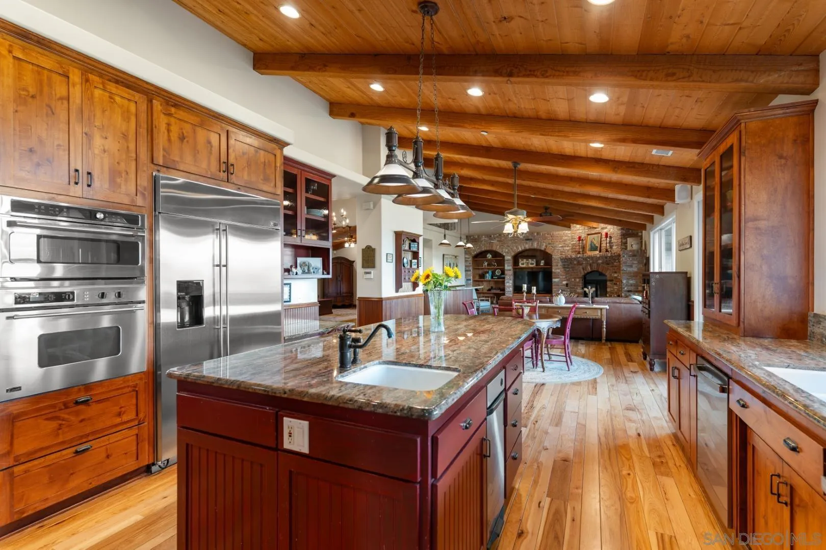 1609 Santa Margarita Drive, Fallbrook, CA—this custom estate offers 4 bedrooms, 4 bathrooms, and 3,780 sq. ft. of refined living space on 3.78 acres of premier equestrian and agricultural land. Designed for those who value craftsmanship and privacy, the home blends timeless architecture with warm natural materials, including 1" solid hickory floors, hand-carved beams, a dramatic 17’ vaulted entry, and detailed brickwork. The gourmet kitchen features a GE Monogram built-in refrigerator, Elmira antique reproduction stove, pot filler, and new dual GE Profile dishwashers. A private 600 sq. ft. guest house with its own bed, bath, and entrance is ideal for extended family or visitors. Above the main home, a 1,200 sq. ft. semi-finished attic with soaring 17’ ceilings offers excellent potential for added living space or a studio. Equestrian amenities include a 4-stall barn, riding arena, tack room with bath and laundry hookups, trailer/RV parking with utilities, and keyed access to the gated Santa Margarita Horse Trails for miles of riverfront riding. Agricultural features include 218 producing Hass avocado trees supported by a high-output well and computerized irrigation. Additional highlights include multiple garages, RV parking, zoned HVAC, surround sound, and sweeping views of the Santa Margarita River Valley—creating a serene and elevated ranch lifestyle. We invite you to experience this exceptional property in person and discover the unique beauty it offers.