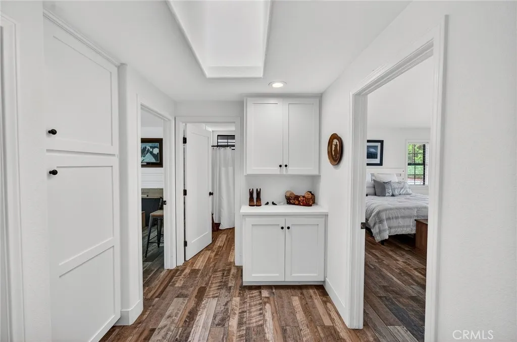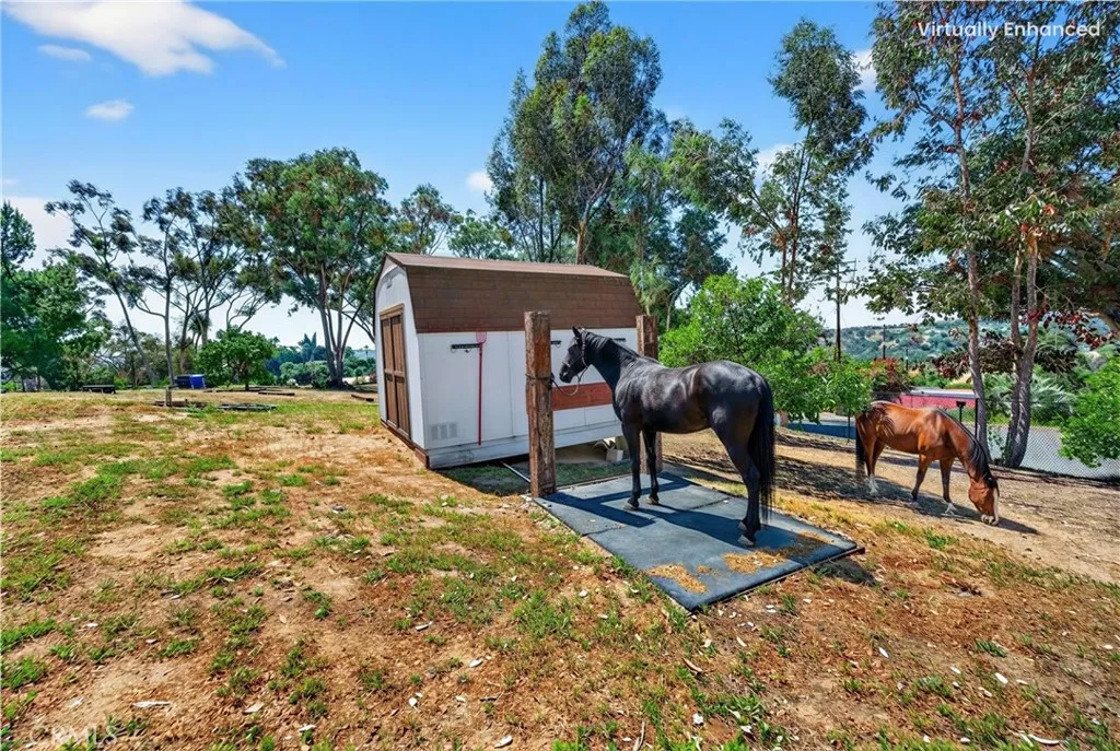 Private, single-story Spanish ranch on a quiet cul-de-sac in Fallbrook with usable land, horse setup, and beautiful sunset views. Tucked away in a peaceful setting, this property offers privacy, functionality, and a clean modern farmhouse interior with a warm, inviting feel. The welcoming curb appeal, covered front porch, and surrounding landscape immediately set the tone for relaxed country living. Inside, the remodeled open floorplan creates a natural flow between the kitchen and living spaces, with vaulted ceilings and an abundance of natural light. The kitchen has been thoughtfully updated with shaker-style cabinetry, quartz countertops, stainless steel appliances, a gas range, additional oven, microwave, and a built-in wine and beverage fridge. Ceramic wood-look tile flooring runs throughout, while shiplap accents, subway tile, and a farmhouse-style fireplace add character without feeling overdone. The home is fully fenced with an electric entry gate, offering both privacy and ease of access. The garage includes built-in cabinetry along with a designated office space, and a completely separate workshop provides flexibility for projects, equipment, or hobbies. Set on a usable parcel, the property offers a welcoming equestrian setup with a hay shed, wash rack, trailer access, and ample parking for trucks, trailers, or recreational vehicles. The layout allows for horses while still maintaining open space and usability. The grounds include mature fruit trees and space for a garden, along with multiple areas to enjoy the surrounding landscape. From the property, youll take